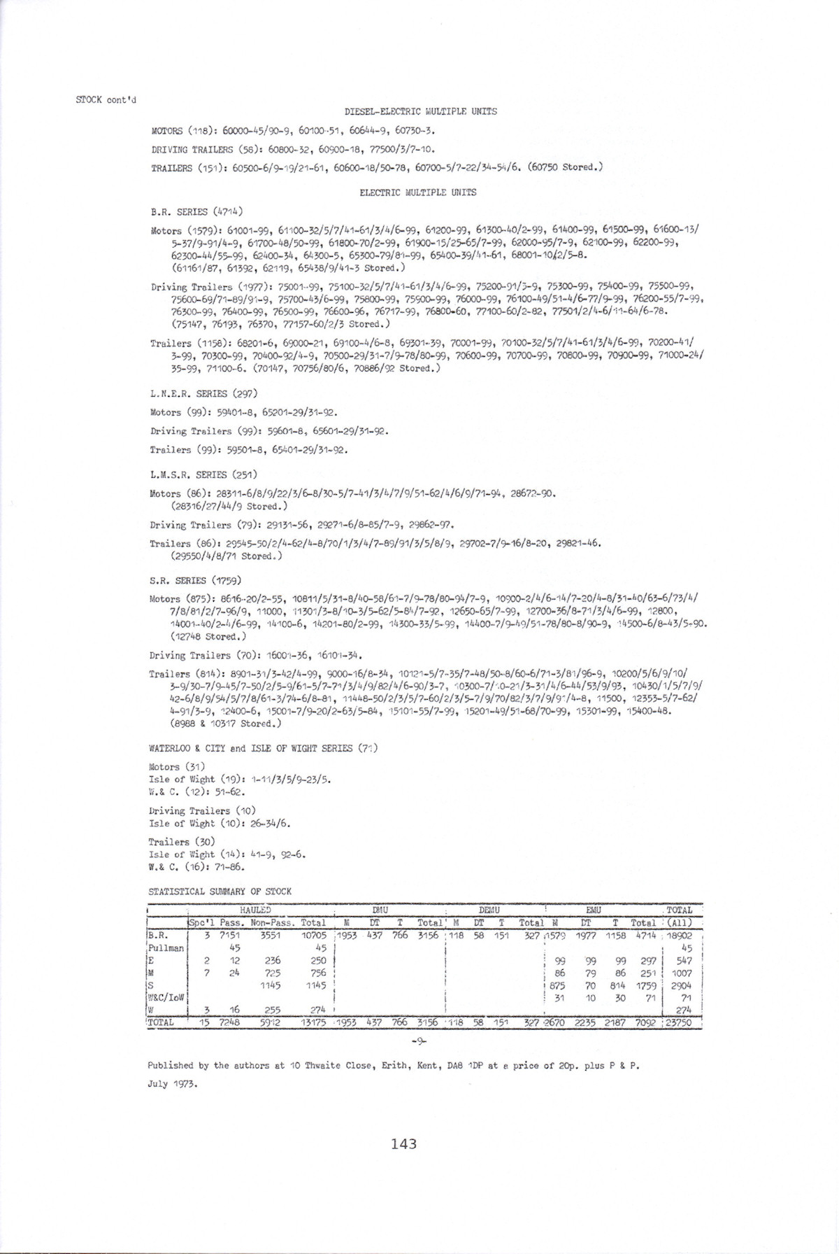 The addendum also included a very brief listing of all stock (for the benefit of readers who did not buy the original book) as well as a useful statistical summary. |