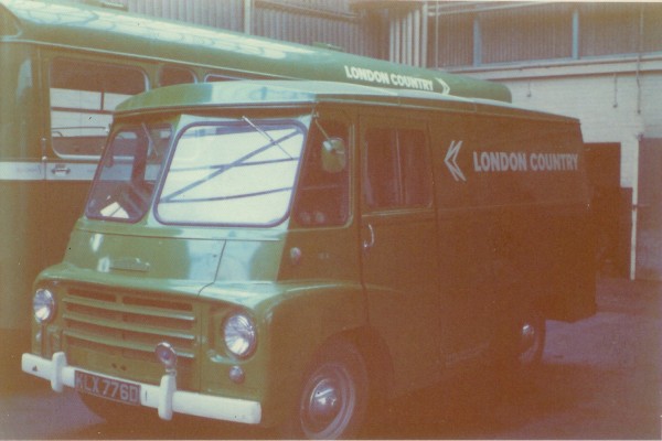 | Details: Pictures of SVs from the early years of LCBS are rare so this view by Les Wrangle is particularly welcome. It shows Austin LD van 10A in Dunton Green Garage in the early 1970s carrying full NBC green livery. This van had started life as LT 1452AS in August 1966. It was sold to LCBS in November 1972, almost 2 years after the formation of the new company, this possibly explaining why it was given a number in LCBS's new SV series rather than retaining its LT stock number. Repainted green in October 1973, it was destined to only last a further 17 months. | ||||