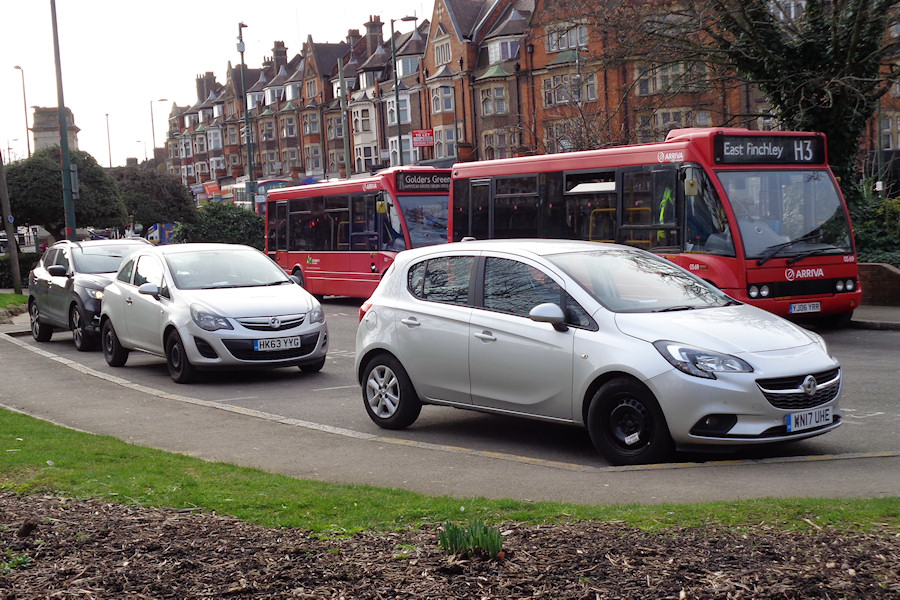 | Details: The small layby alongside the bus station in Golders Green is the terminus point for routes H2 and H3 (plus associated, school-day route 631). These are currently operated by Arriva from Garston, and crew ferry cars from there are also often present. On 8th February 2018 Ray found a pair of Vauxhall Corsa cars. Five-door WN17UHE was new in April 2017 but had not previously been reported. Three-door HK63YYG behind was part of a batch new to Edmonton garage in 2014, transferring to Garston in 2016. The Golders Green local routes have been operated by Optare Solo buses for several years, first by Metroline then by Arriva the Shires. The Shires operation was transferred to Arriva London in 2016 and the routes are being lost on re-tendering in June this year. The new operator will be Metroline, with Optare Solos! I wonder if the passengers will even notice.... | |||||