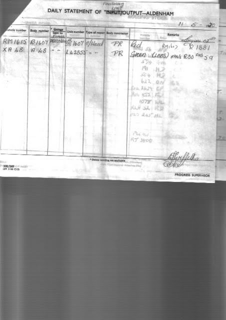 Title: | Daily Statement of Finishing Line Output - Aldenham - 12th May 1970 |