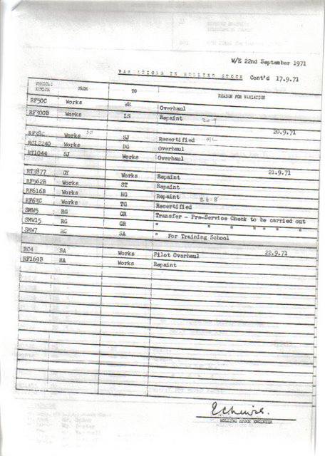 Title: | Variations in Rolling Stock on 21st September 1971, page 2 of 2 |