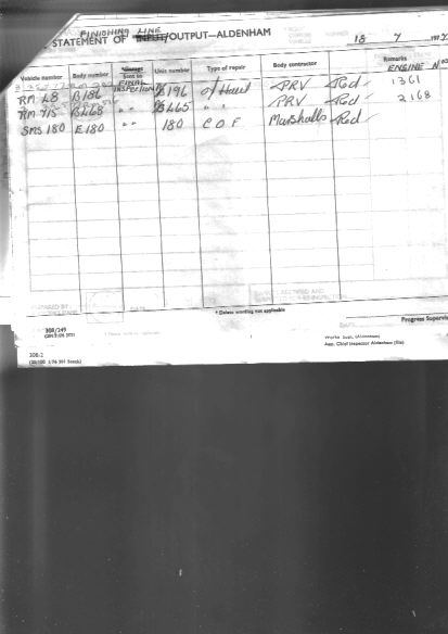 Title: | Daily Statement of Finishing Line Output - Aldenham - 15th July 1977 |