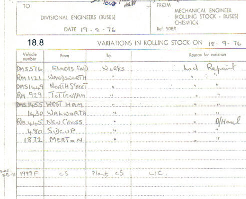 Title: | Variations in Rolling Stock on 19th August 1976, page 1 of 2 |