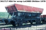 During 1989 a further conversion for scrap traffic saw the SJA code applied to three HSAs (360040, 360761 and 361486) rebuilt with reinforced box bodies. These were painted red and included a door for sweeping out. As no further wagons were converted it can be assumed these were not a complete success.