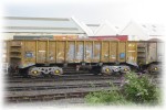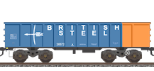 The final batch of 123 wagons arrived from 1977 and they were used from Hunterston on the Clyde estuary to Ravenscraig steelworks. They were also reported to work from quarries at Shap and Thrislington, presumably carrying limestone or dolomites. As with the other batches, these wagons were made redundant when Ravenscraig closed in 1992, and a few were transferred south to bolster the Llanwern fleet. The sturdy and youthful wagons were also suitable for conversion to other types and a total of 56 were rebuilt as covered steel carriers (TOPS code JSA) and renumbered in the range BSSP4020-4099. The conversion also involved fitting of conventional draw-gear at each end. A similar conversion to JSA (although to a distinctly different design) was undertaken on 18 of the ARC batch, these being renumbered from the PR268xx range to CAIB3063-3080.