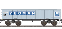 The second batch of 114 wagons was built from 1972 at British Steel's own Redpath Dorman and Long works in Middlesbrough. Mounted on BSC Axle Motion bogies, these wagons looked quite different, with a beefed-up body, heavier ribs (including horizontal ones on the wagon ends) and no visible solebar. The slight taper of the bodysides on the original batch was retained. This batch entered service between Redcar and Consett steel works but was destined to last less than 10 years. Consett closed in 1981 and the wagons were sold to wagon-hirer Procor. The design was suitable for aggregates traffic and the wagons were overhauled and transferred to the South-East for use by roadstone companies. ARC took 50 which were renumbered PR26801-26850. The remainder were hired to Yeoman and retained their original numbers albeit with PR prefixes. Their use was in block formations from quarries at Merehead, Whatley and Tytherington to depots in London and the home counties. The Yeoman service was for a time the heaviest regular freight train in the UK, 43 of the wagons being hauled by a pair of class-56 diesels from Merehead to Acton where the train was split. The liveries (originally grey/orange like the Scunthorpe batch) were changed to ARC mustard or Yeoman grey.