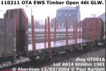 Design/Diagram: OT001A Timber Carrying Wagon Design/Diagram: OT001C 46 tonne GLW Timber Carrying Wagon Design/Diagram: OT002A 41t GLW Timber Wagon Design/Diagram: OT002E 41t GLW Timber Wagon Design/Diagram: OT002F 41t GLW Timber Wagon TOPS Class/Code: OTA Timber Wagon |