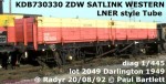 As already noted, the Tube wagon design lasted a while longer in departmental use. The 536 in stock in 1990 reduced to 167 by 1994. Some wagons had had through air pipes added, resulting in a recoding to ZDW, while some also received the new Satlink livery of overall red with the top two planks in yellow. By 1999 TOPS was listing 73 wagons that had originally been Tubes, now with a variety of codes. 1 STV was still shown, along with 2 ZAV, 2 ZDB, 33 ZDV, 19 ZDW, 4 ZDX, 8 ZGV, 1 ZSO and 3 ZSW. Most were in withdrawn, reserve or zero maintenance pools, but an active allocation to Three Bridges comprised 8 of the LNER design wagons, by then around 50 years old. Three of the former ferry wagons remained in use as ZDXs based at Allerton. By 2008, just five Tube wagons remained on TOPS, and none had been used for several years. Fortunately, the extended lives of many of the wagons meant that about 40 were eventually bought for preservation.