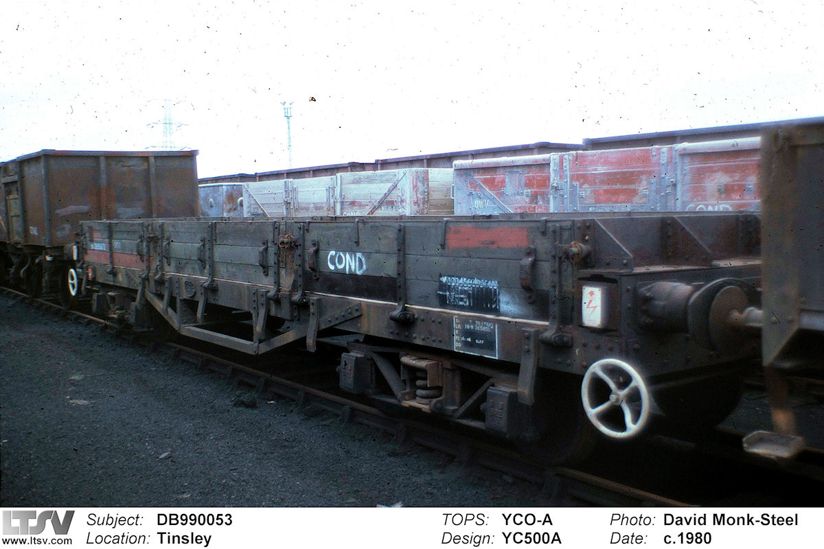 DB990053 was marked as condemned when seen at Tinsley in about 1980.