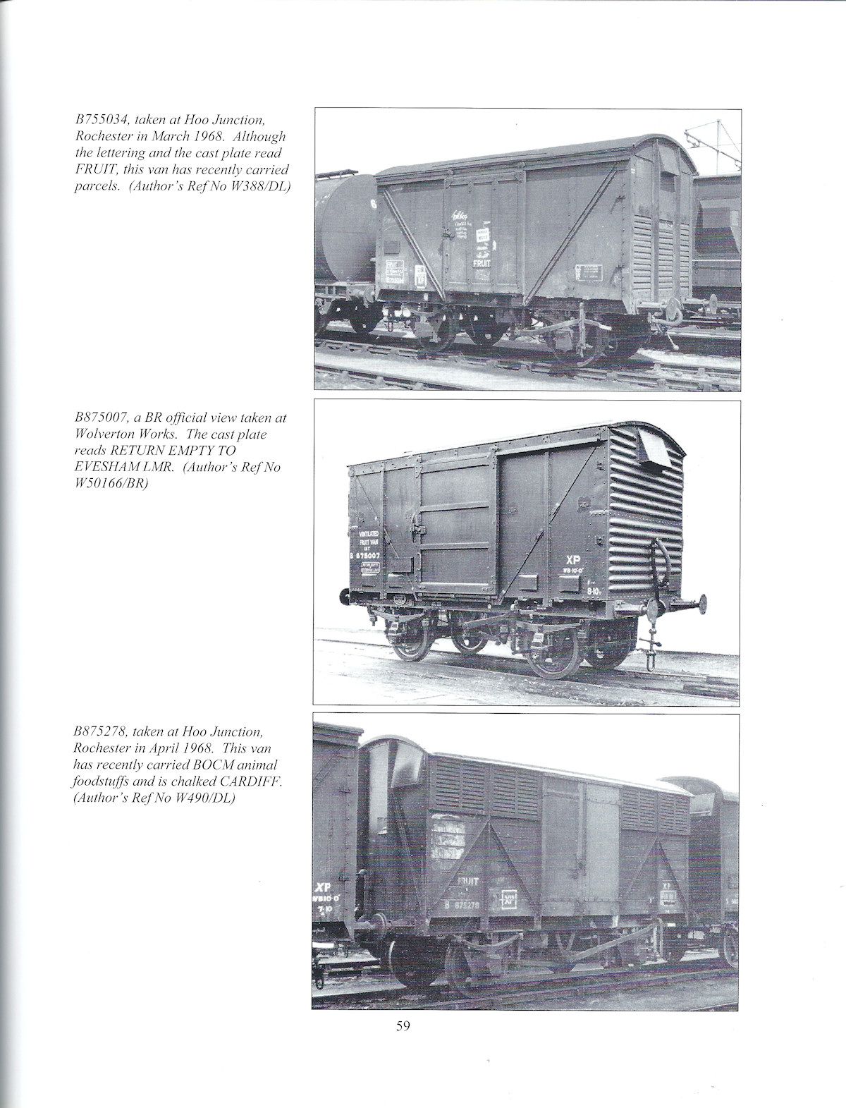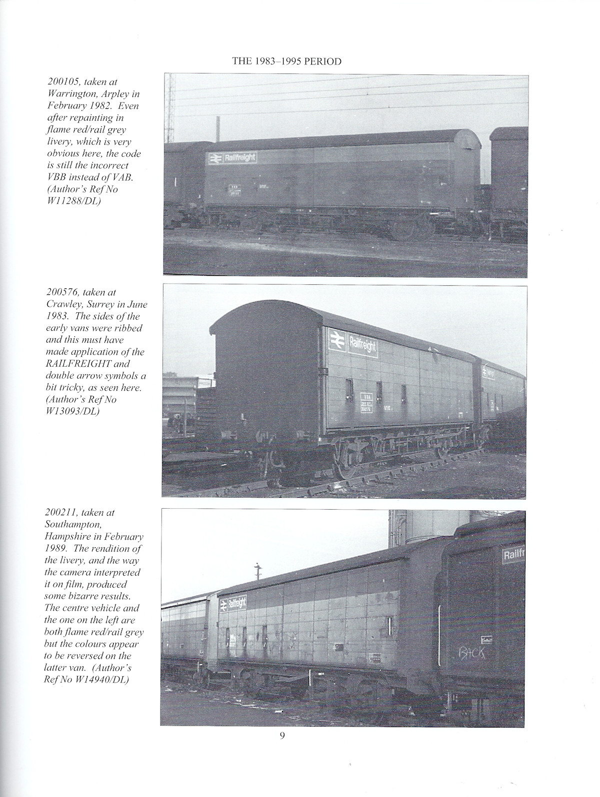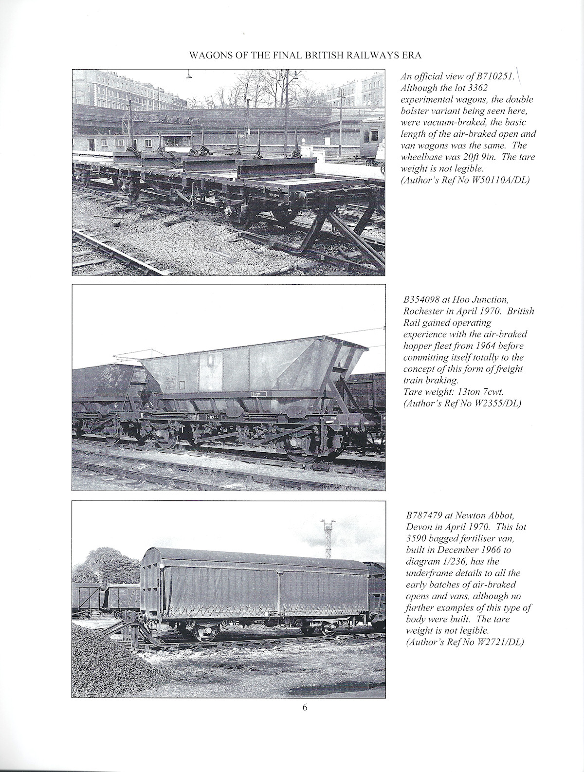 Review: | David Larkin followed up his 'Working Wagons' series with this set of books focusing on the revenue-earning wagons owned by British Railways. Although the breadth of the subject matter is less (for example private owner and departmental wagons are not covered), the detail is increased. This includes tabulated lists of build batches for each type (complete with detailed build dates) and coverage of significant modifications, usually listing the affected numbers. This is interesting but seems somewhat out of place in books that are subtitled 'A Pictorial Study..'. Taking extreme examples, the middle volume lists the 16ton Mineral wagons that were rebuilt with vacuum brakes, resulting in seven pages filled mainly with a list of numbers, while the 1969-1982 book has eleven pages that are mostly a list of numbers of rebodied 21ton Hoppers. The photos themselves are mainly excellent, although a few are rather flat and murky, lacking contrast. The first volume has to make use of some official BR 'works' shots to cover certain types, the majority of other photos being taken in service. |