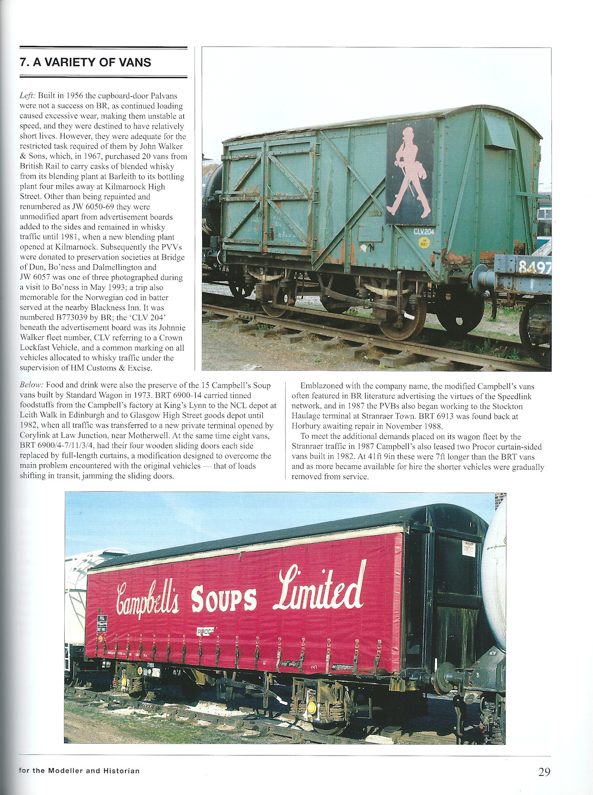 Review: | The 'For the Modeller and Historian' series has covered a range of subjects in recent years, including two titles on wagons by Robert Hendry ('BR Goods Wagons in Colour' and 'BR Goods Wagons in Colour 1960-2003', although the latter also included private owner wagons). The latest title is by David Ratcliffe and is to the same large format as earlier titles, with 220 excellent colour photos on glossy paper. Captions provide details of the wagon and, often, the services they were employed on. The pictures are mainly from the 1990s and coverage is fairly good, particularly for tank wagons (90-odd photos). One exception I noticed was that the bogie container flats used for domestic waste traffic were not included. Rarities that are illustrated include Johnnie Walker and MoD Palvans, and the PMVs (ex MDV) very briefly used as scrap carriers in Scotland. This book very nicely captures the huge variety of designs (and, more notably, liveries) that characterised the PO fleet. |