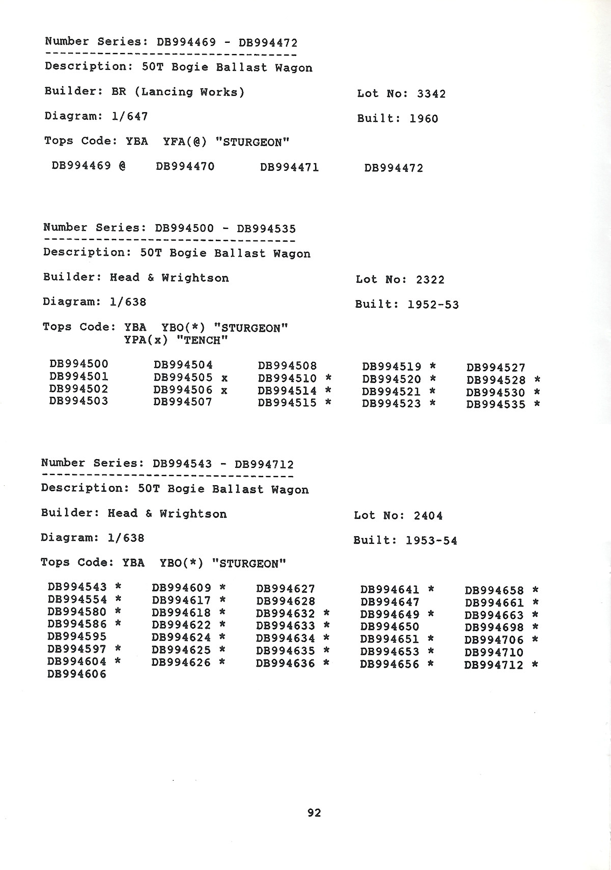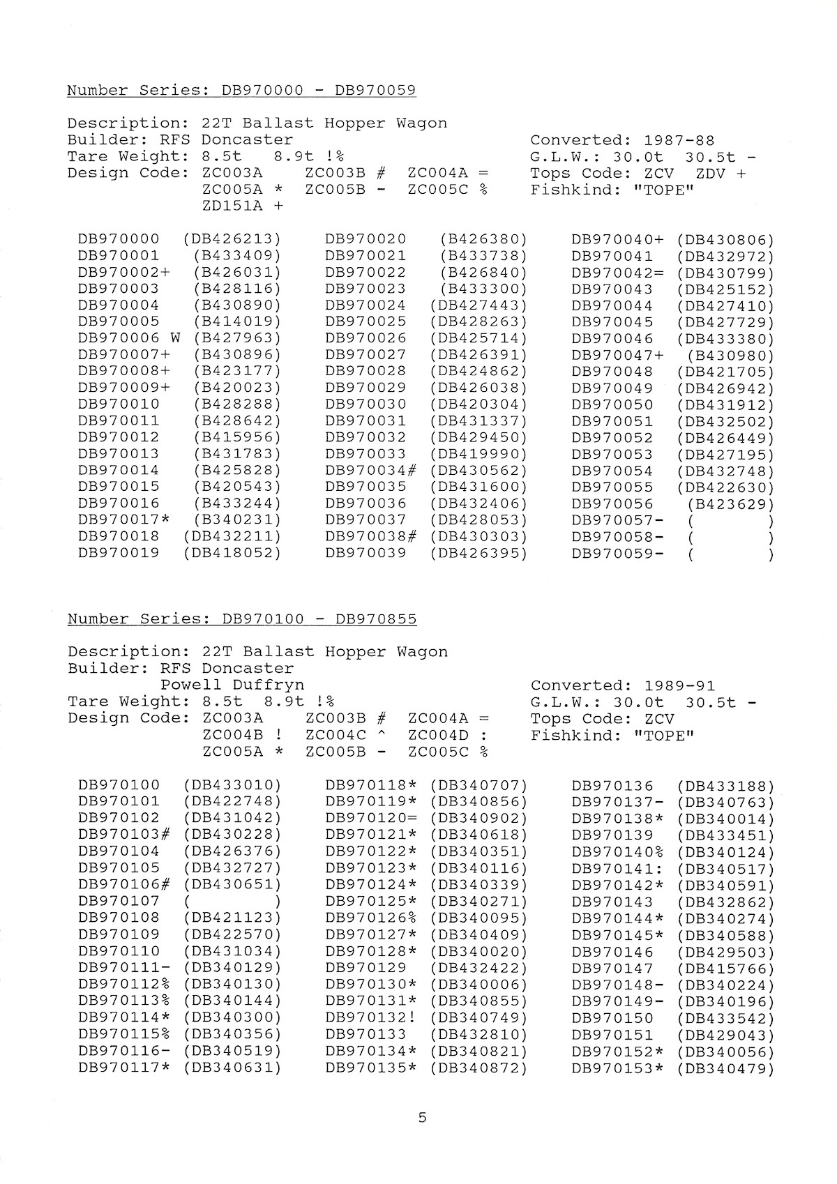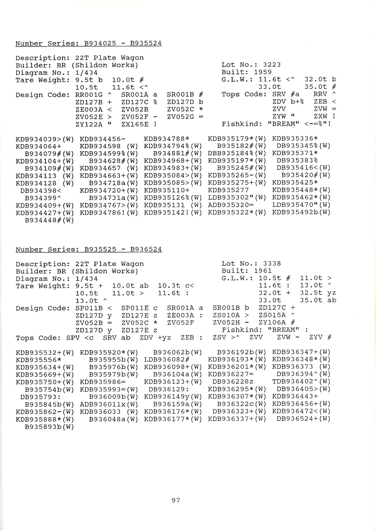 Each batch was headed with build details, including design codes (variations being highlighted with symbols) and information on where the wagons operated. Numbers were shown in full (i.e. with prefixes).