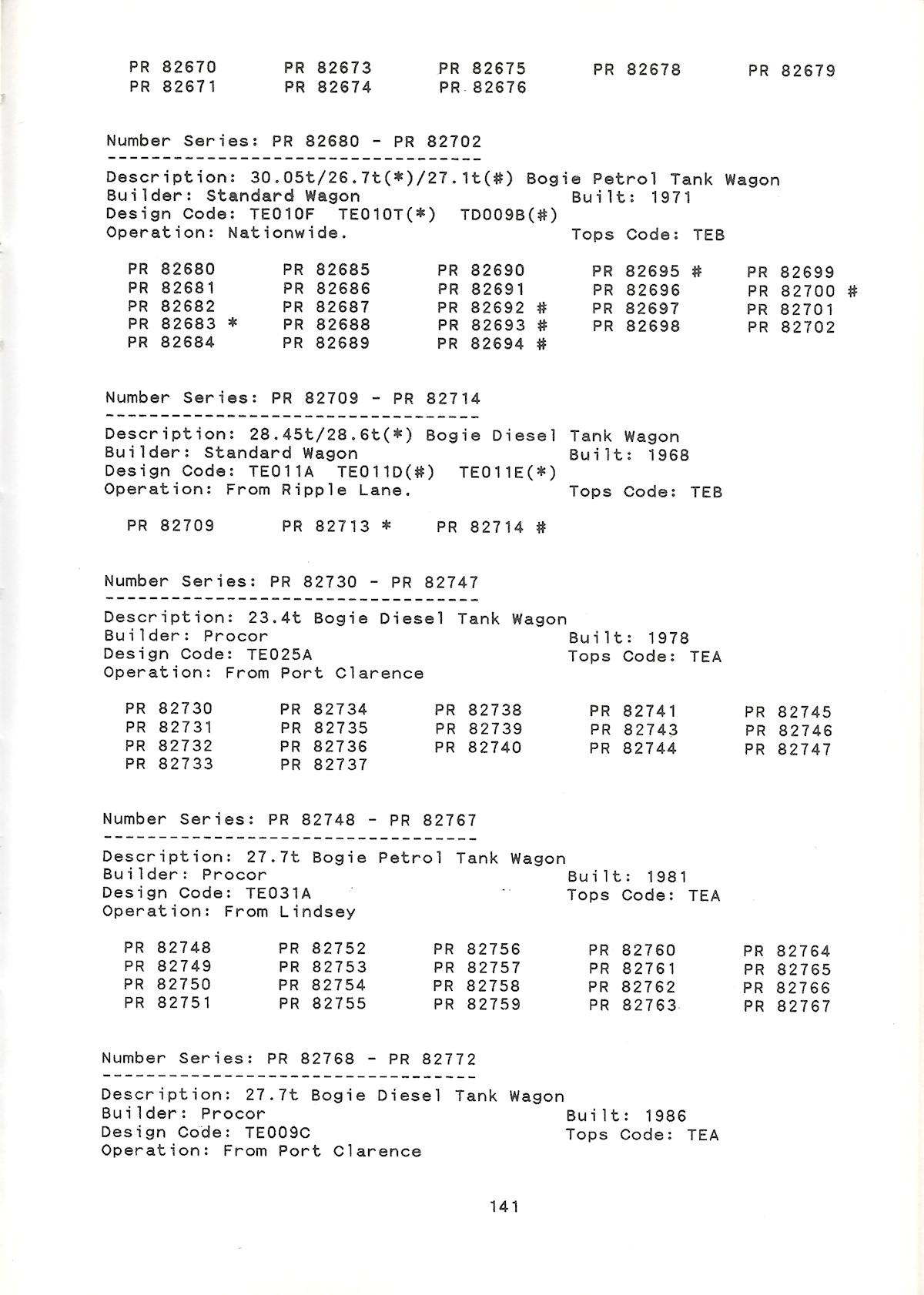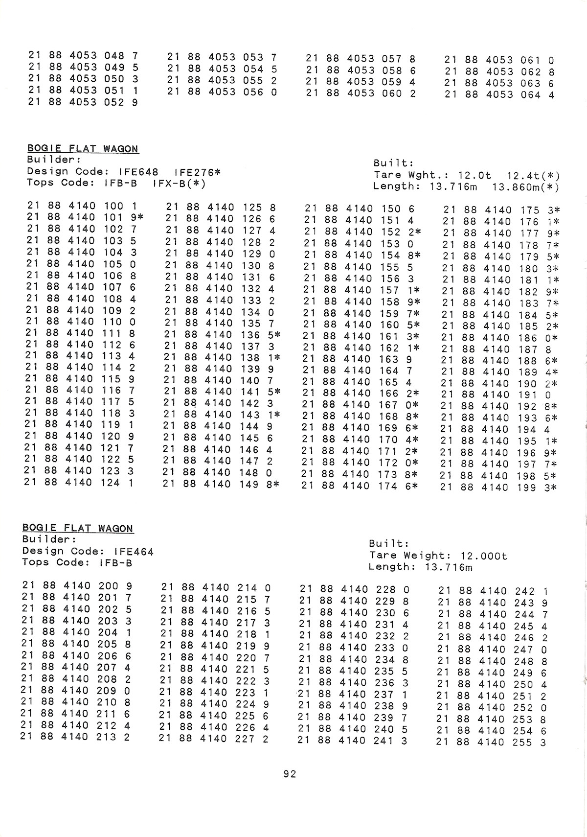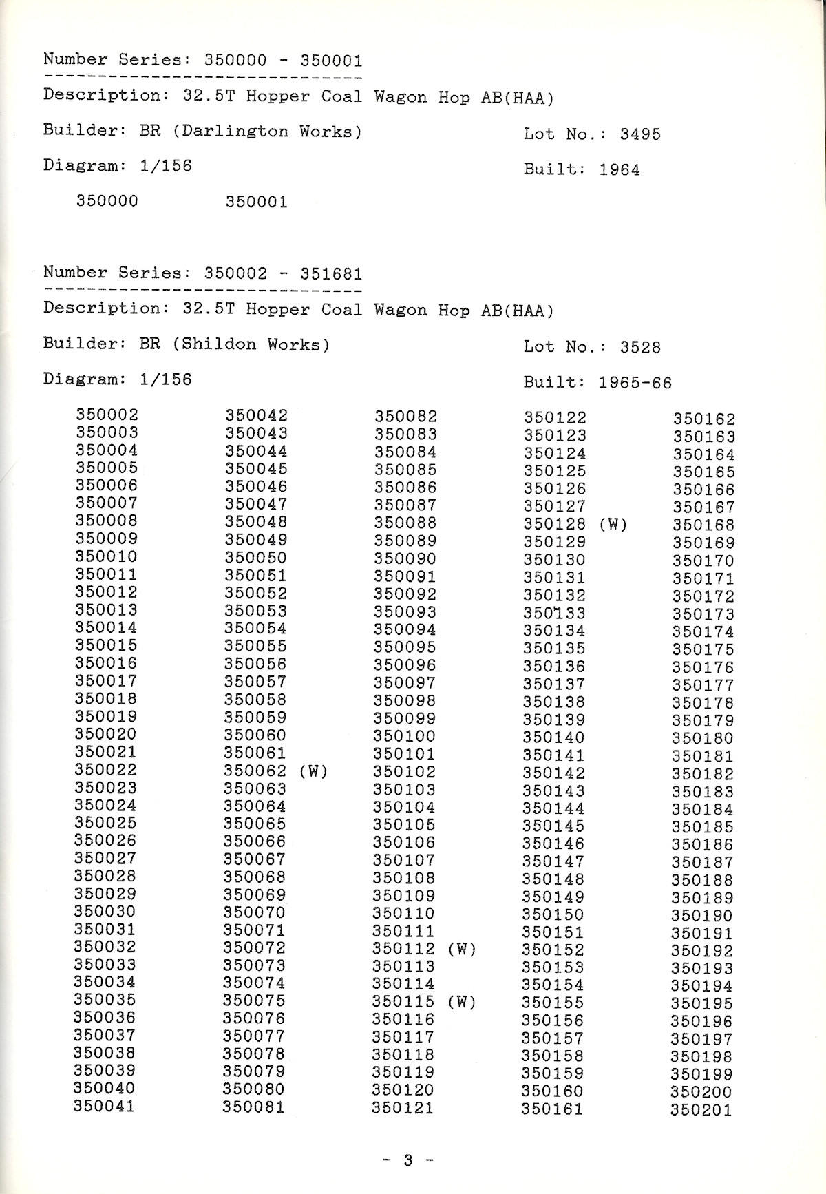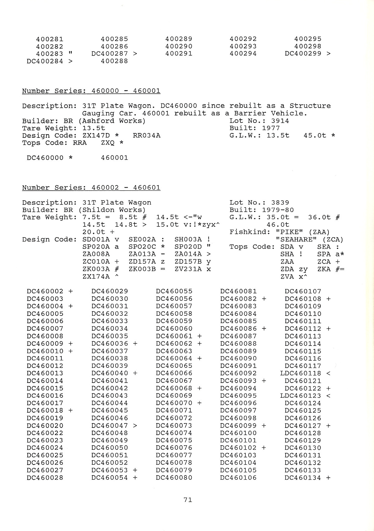 Each batch was headed with build details, including design codes (variations being highlighted with symbols) and information on where the wagons operated. Numbers were shown in full (i.e. with prefixes).