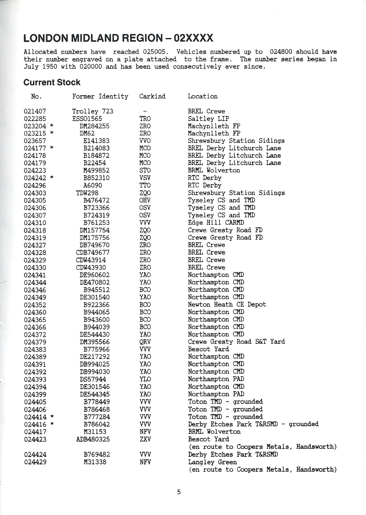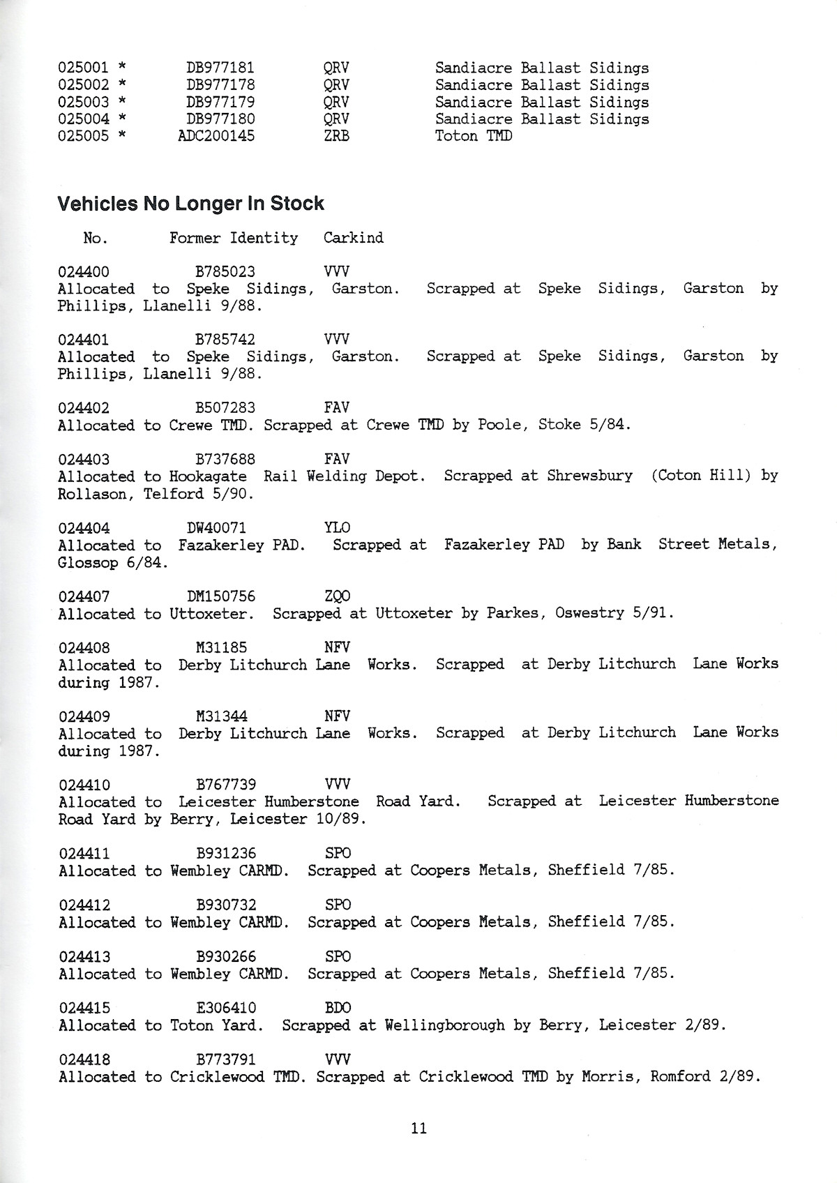 An extra feature in this title was a list of vehicles no longer in stock, this covering all items transferred to internal use since about 1980. For each, the same details as for the live fleet were given, along with information on their subsequent fate.
