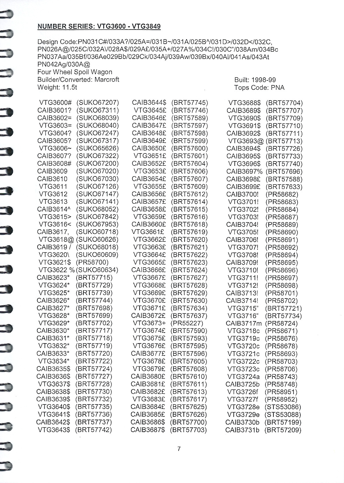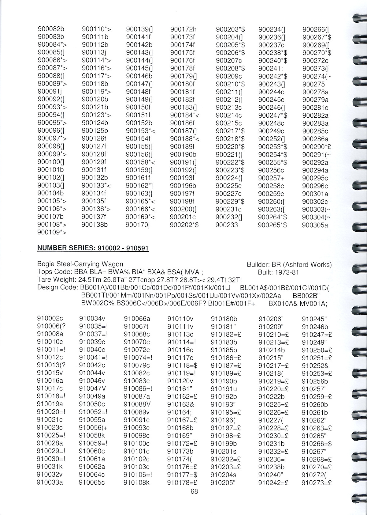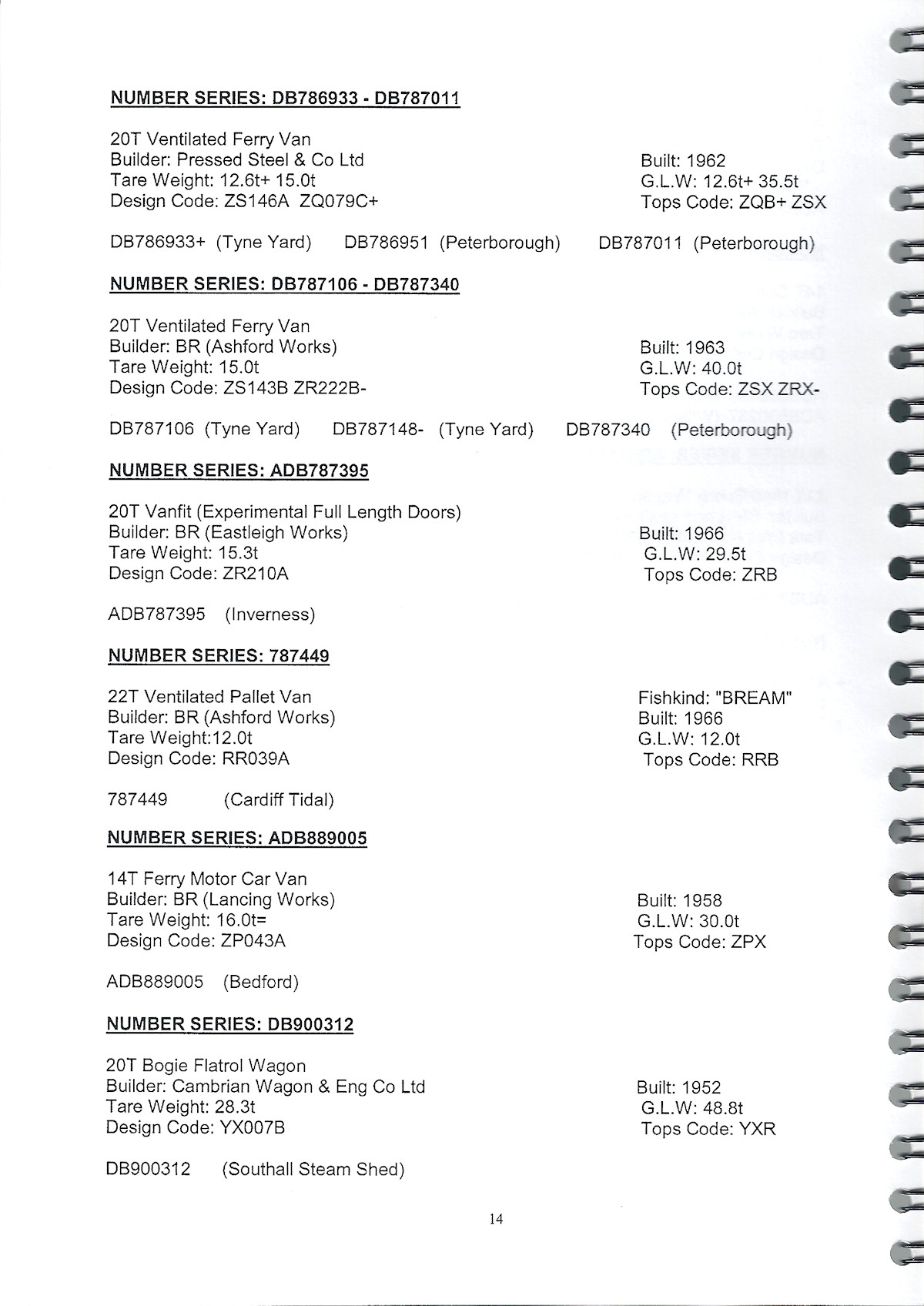 Inside, the detail had been improved by also now showing the design code of individual wagons. However, for some batches the use of symbols for design code, TOPS code and tare weight made the books a bit hard to use.