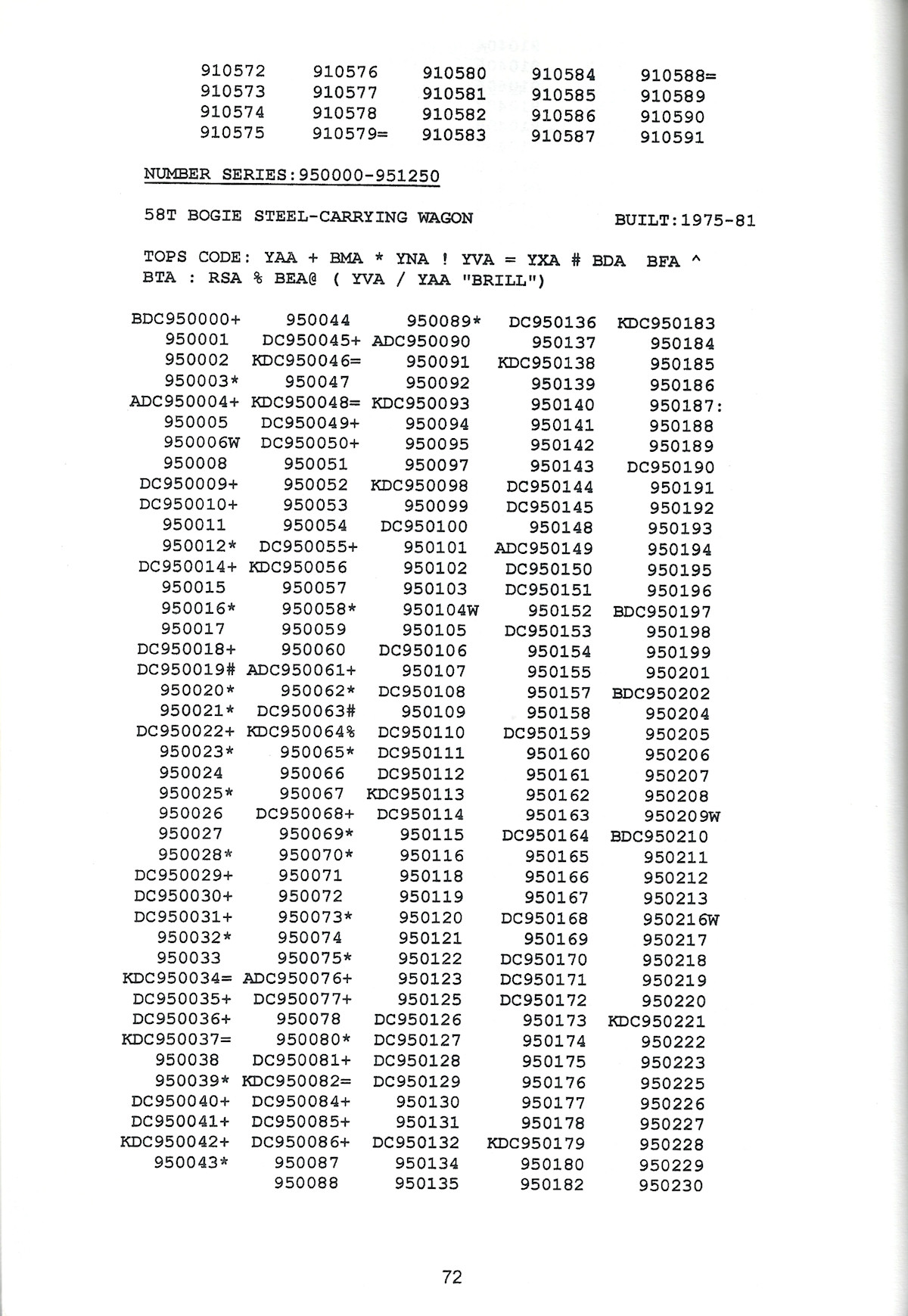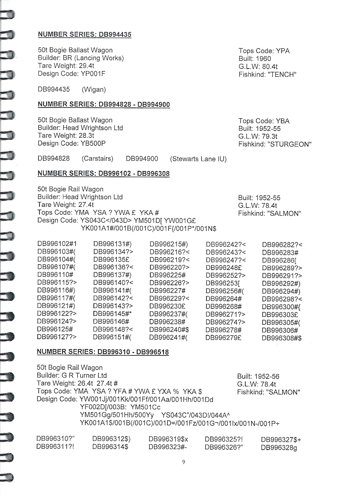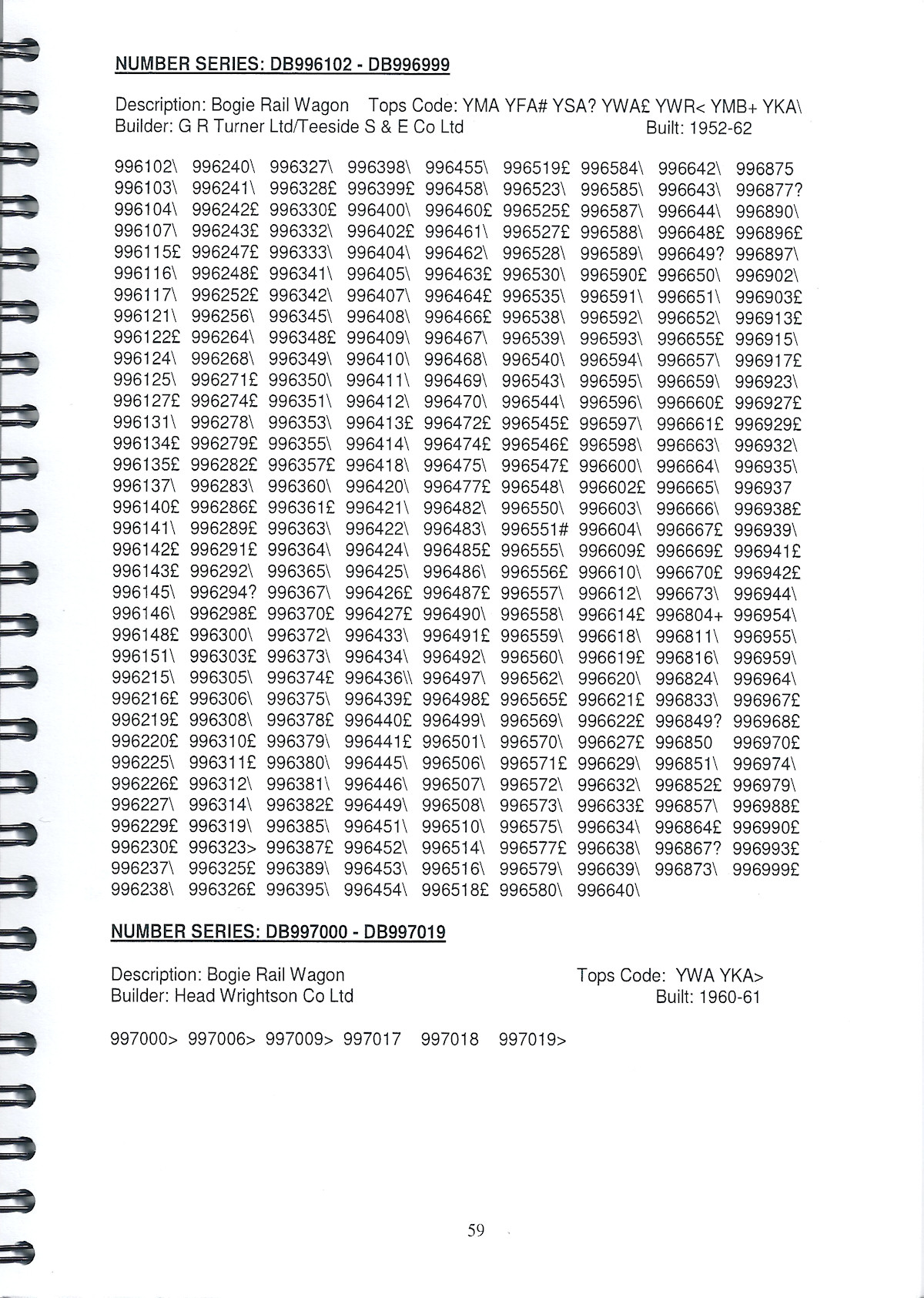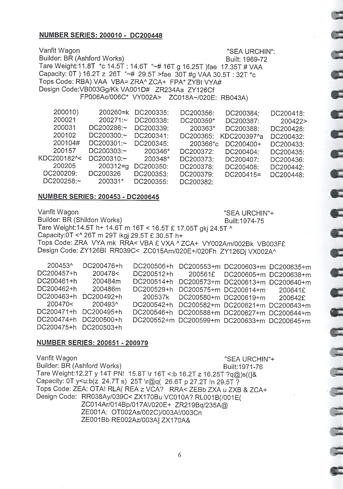 Inside, the detail had been improved by also now showing the design code of individual wagons. However, for some batches the use of symbols for design code, TOPS code and tare weight made the books a bit hard to use.