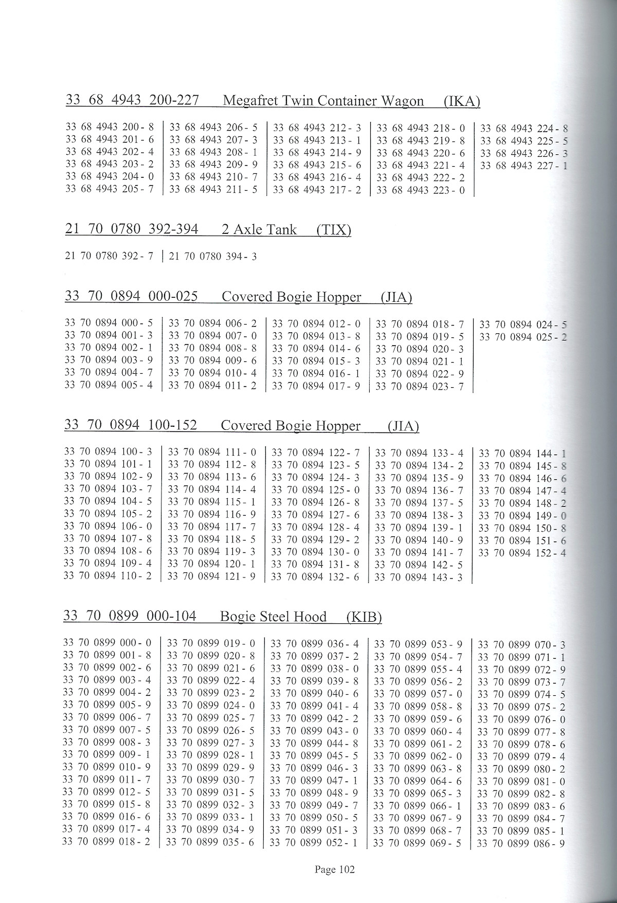 Some air-braked wagons would still have had prefixes in 2006, but these are not shown. More importantly, many batches cover several TOPS codes with no indication of which code each wagon carries.
