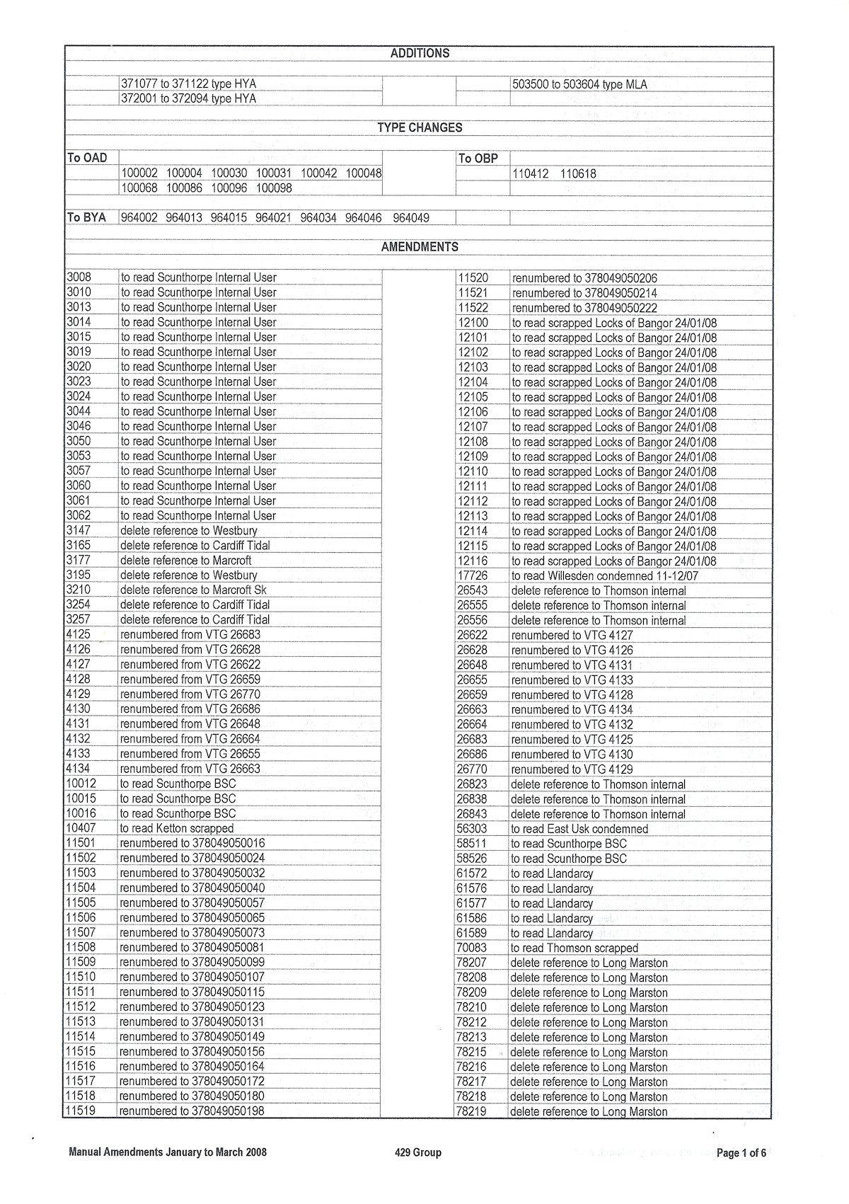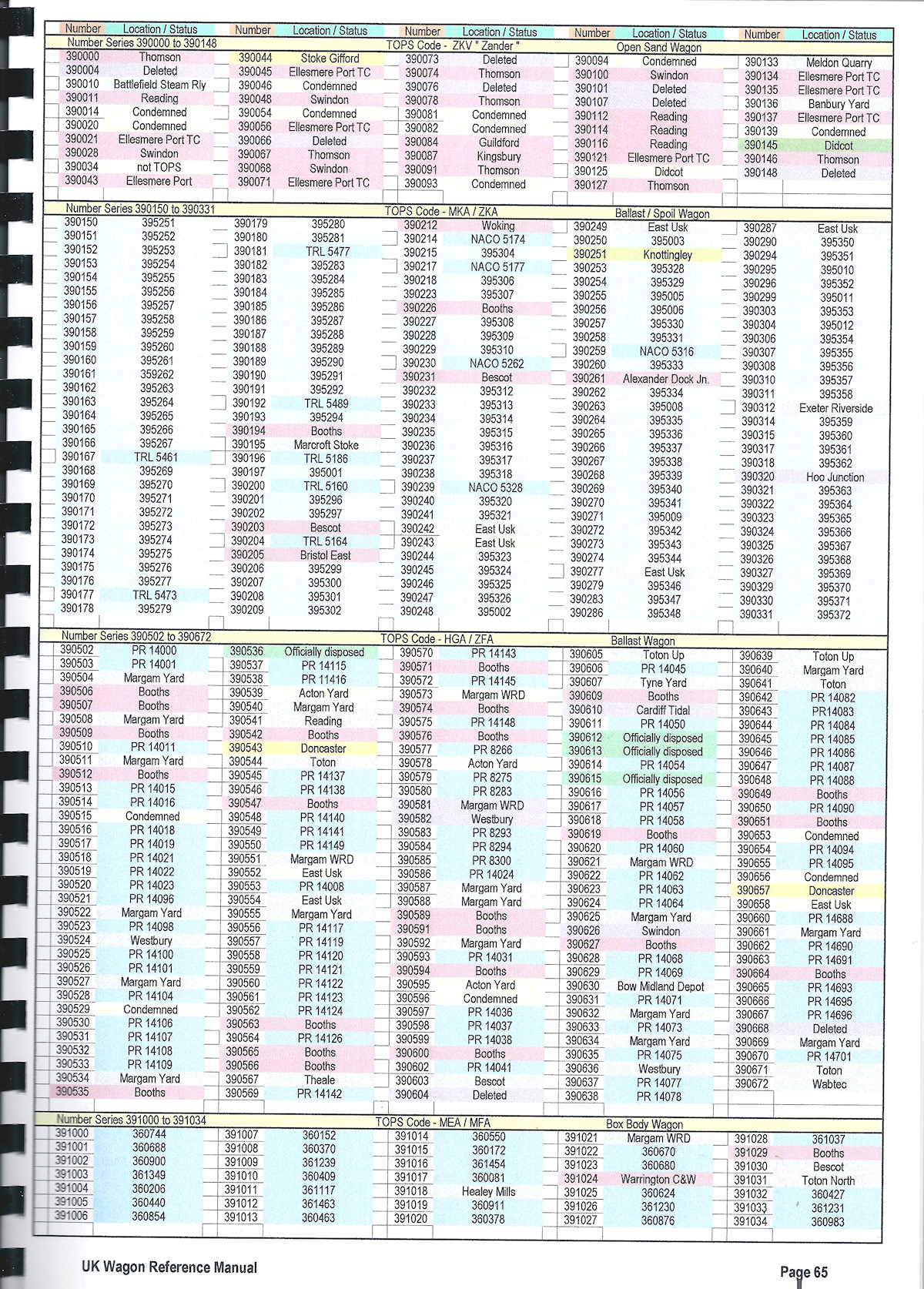 Two further issues are highlighted on this page. Firstly, TOPS code are only given in the batch headings, with no indication of what code each wagon carried. Secondly, previous numbers are shown for some wagons, but others need the space to show storage/scrapping locations or subsequent numbers.