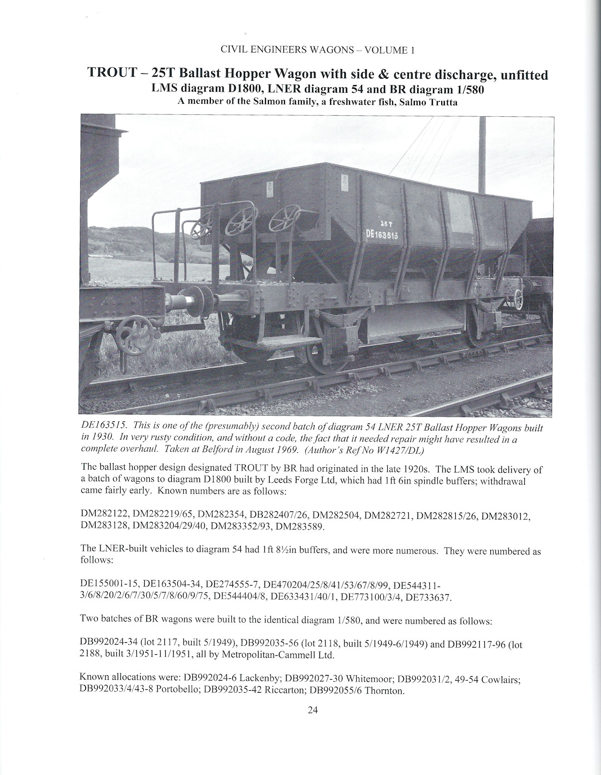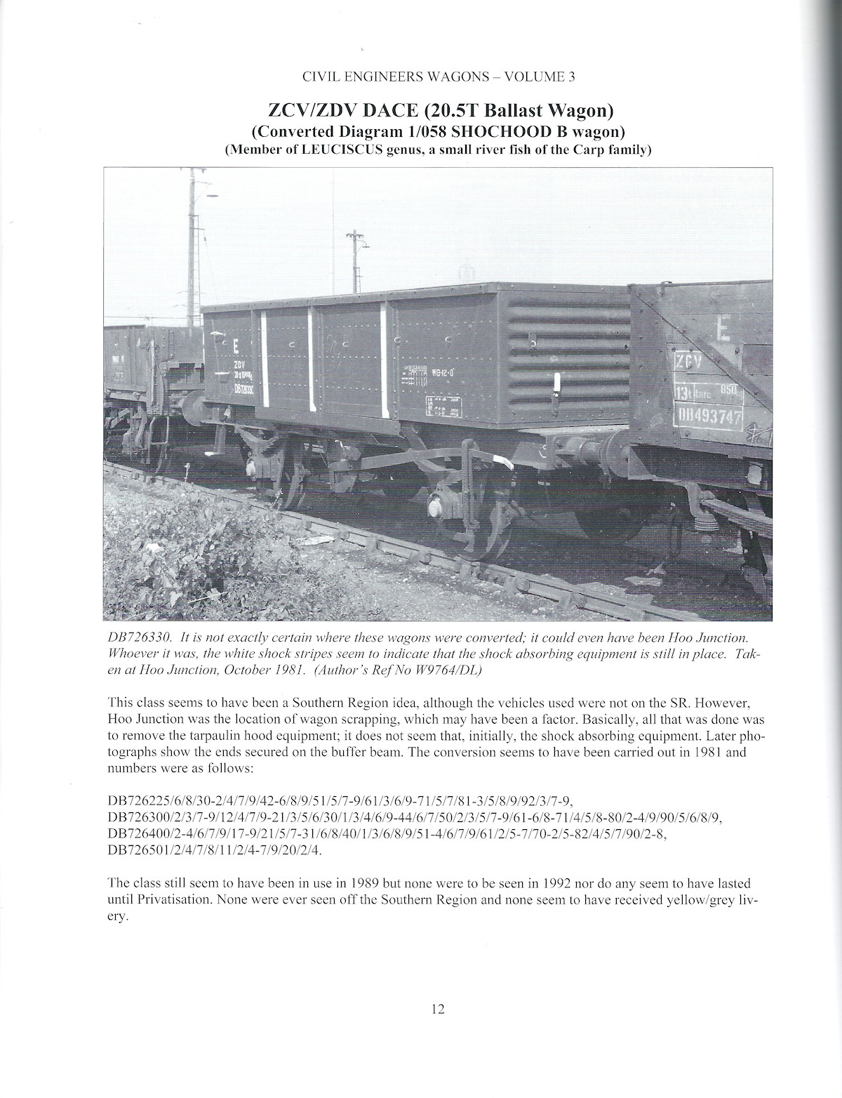 For converted types, full numbering details were given (where known), such as this page which shows the numbers of all Shochoods modified as Dace ballast wagons.