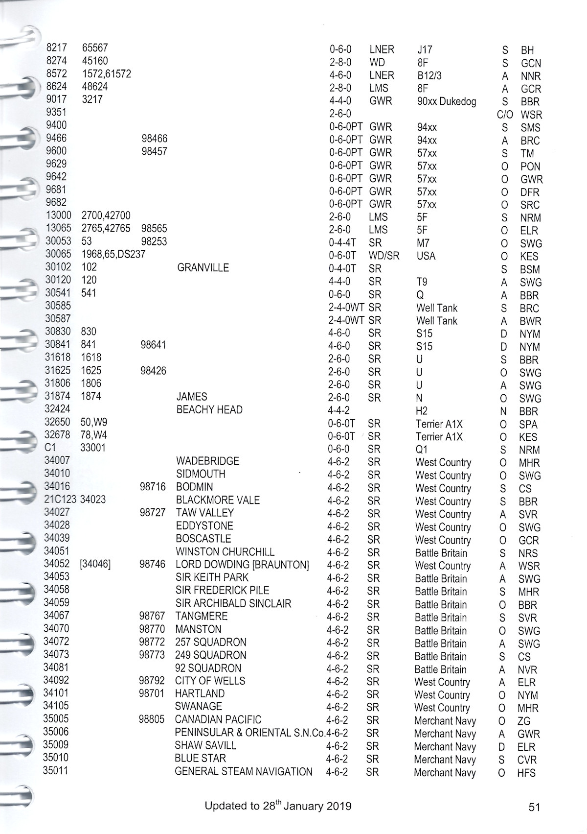 Not only that but all preserved ex-mainline steam locos are also listed. A lot of information is shown here, such as the allocated TOPS numbers for locos that are (or have been) registered to run on the national network.