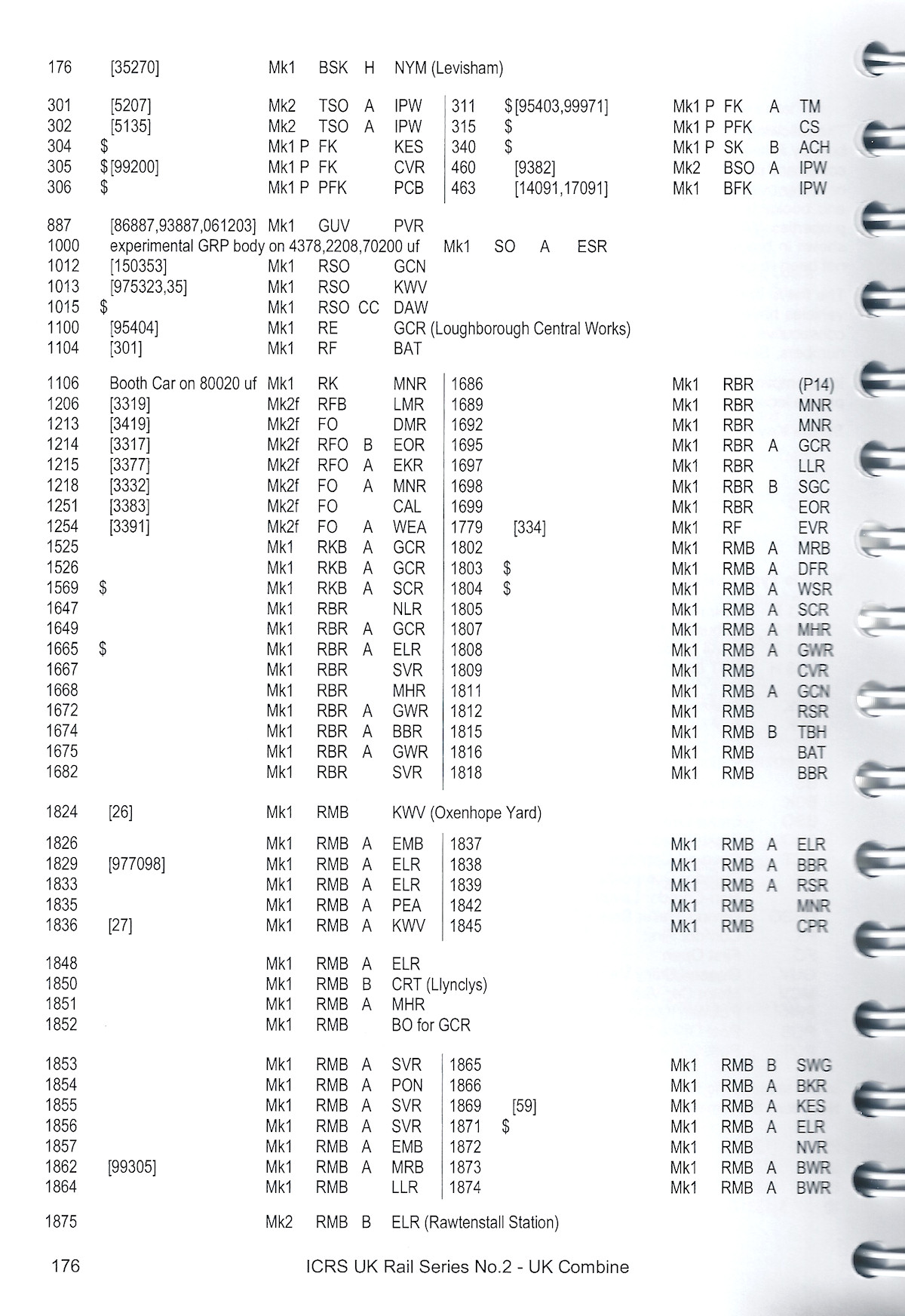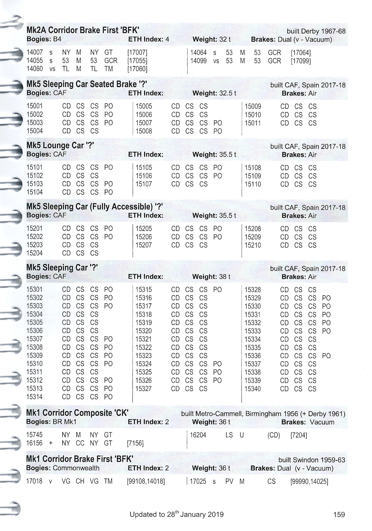 Another feature that sets this book apart is the listing of all preserved coaches (albeit limited to BR Mk1-4 and associated types). This is arranged by current number, so some items do not appear where you would expect them to. |