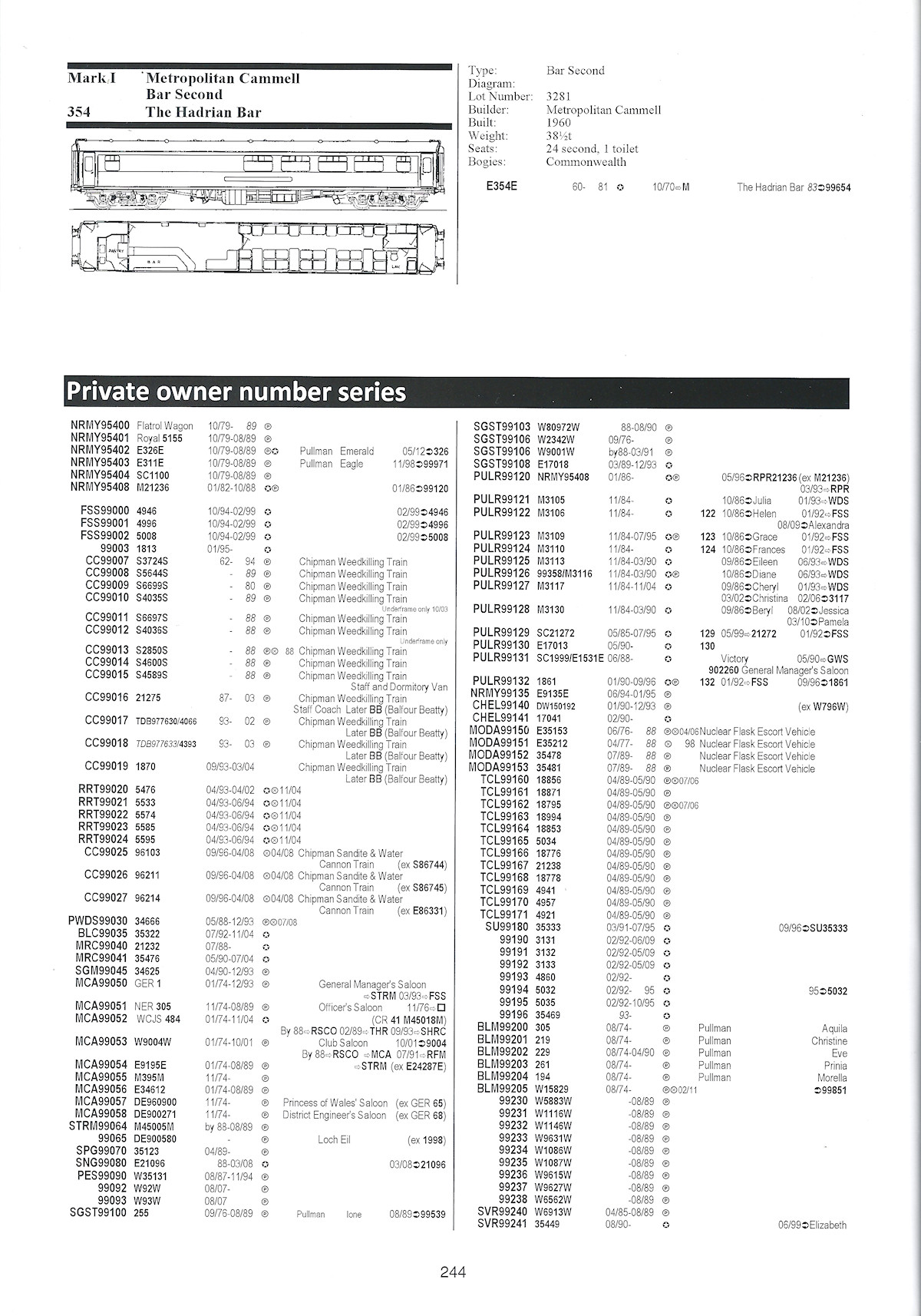 Towards the back of the book are some very useful lists. The first covers coaches given numbers in the private owner series. Note that this covers all numbers, not just Mk1s and Mk2s.