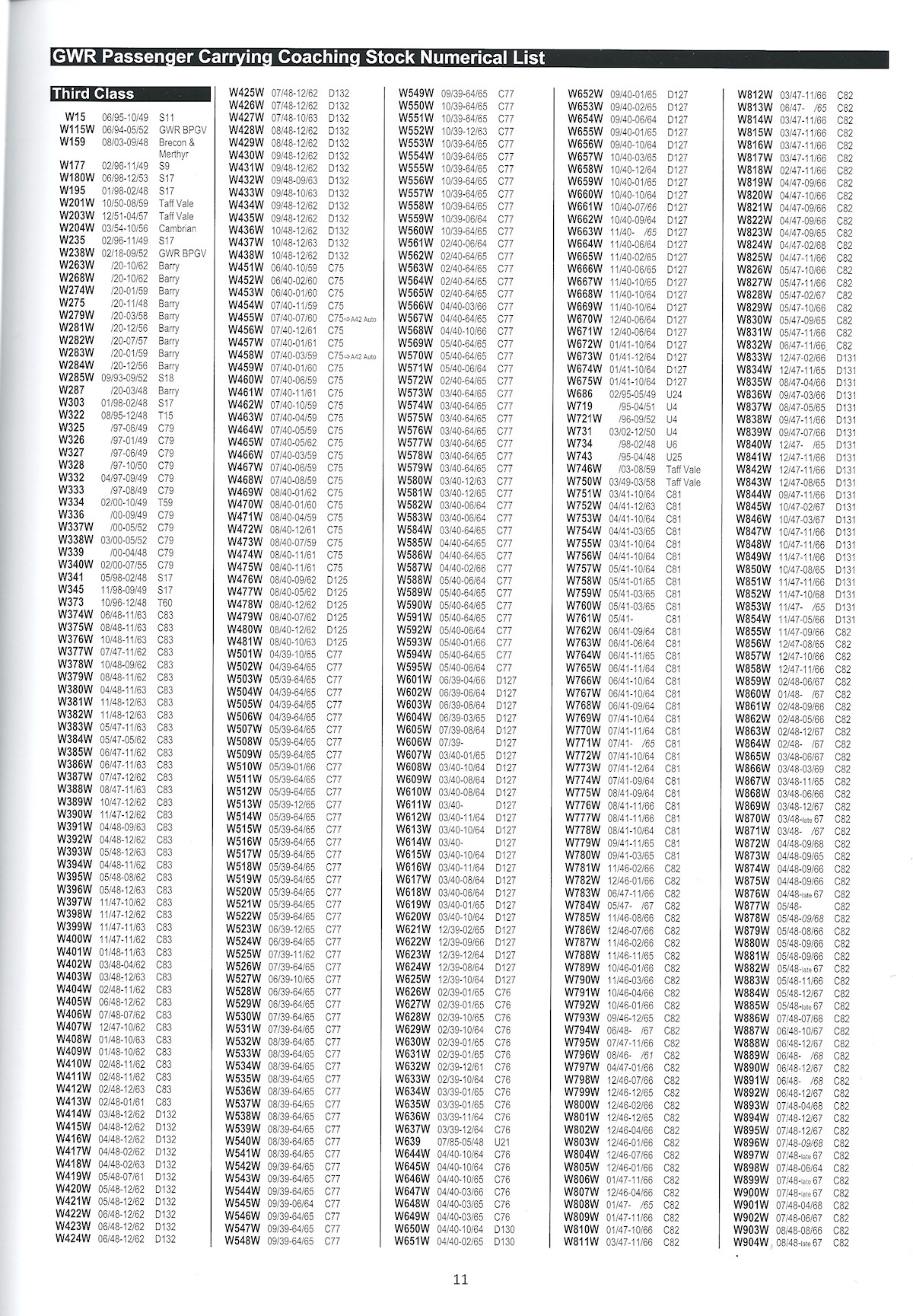Each half of each book started with a numerical listing of all coaches, with their numbers at the time of the change. For each number, the dates of operation were given, along with a diagram number, this section acting like an index for the main listing that followed.
