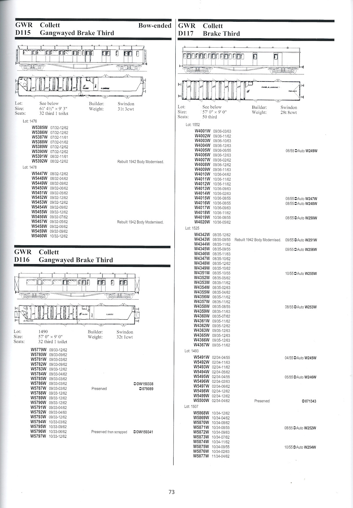 The numerical index for the ex-LNER coaches is complicated by the fact that there was not a consistently applied company-wide numbering scheme.