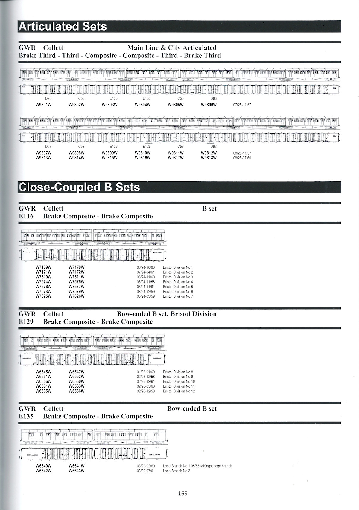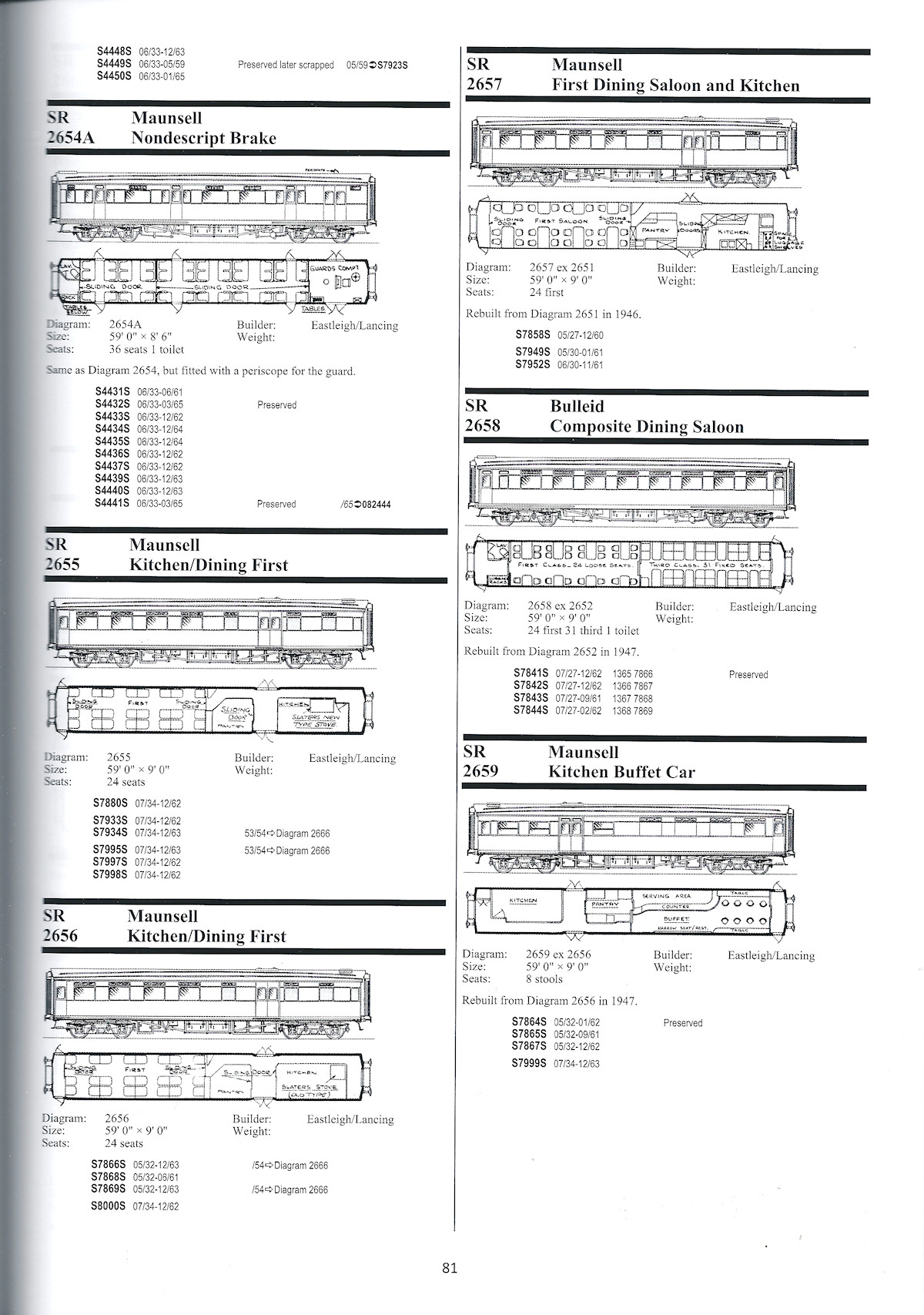 The Southern Region used semi-fixed, numbered sets of coaches, and the formations were listed in detail (including numbers of later-built coaches).