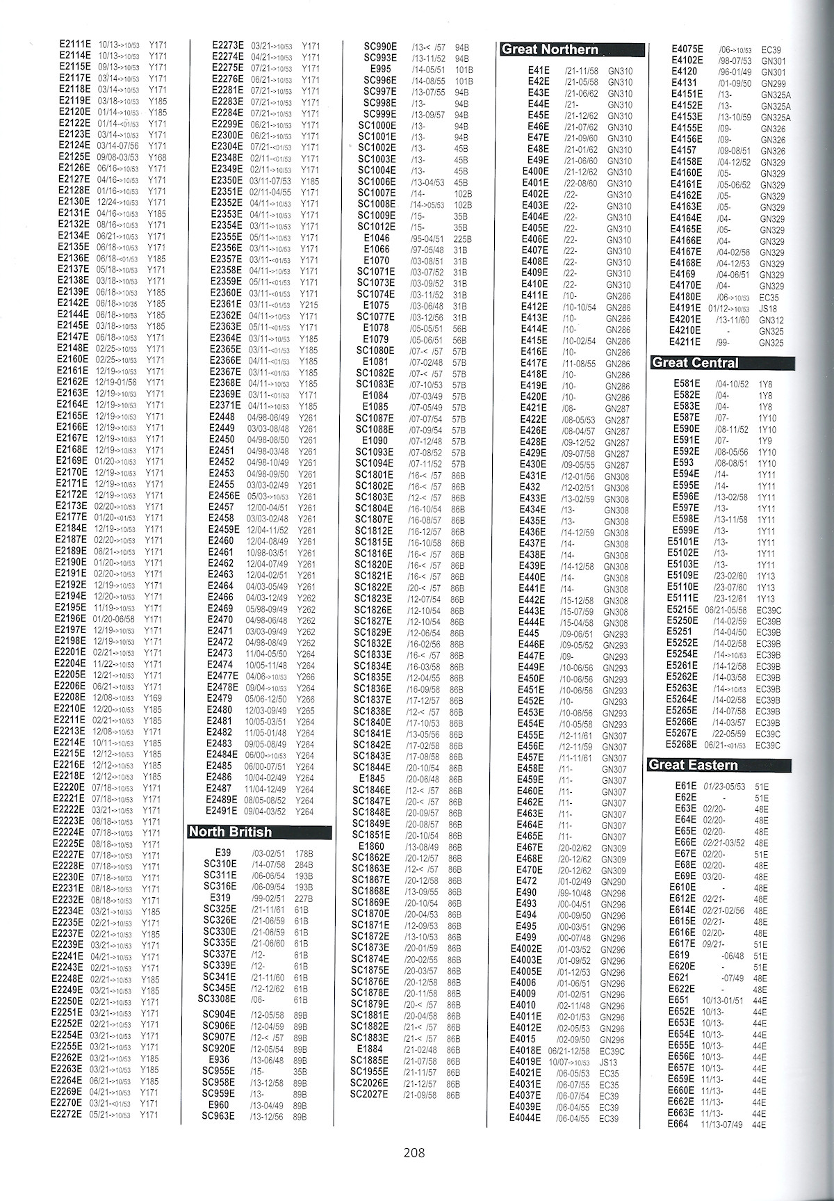As with the GWR section, Eastern Region departmental and internal user renumberings were shown in the LNER section, along with carflat and brake tender rebuilds.