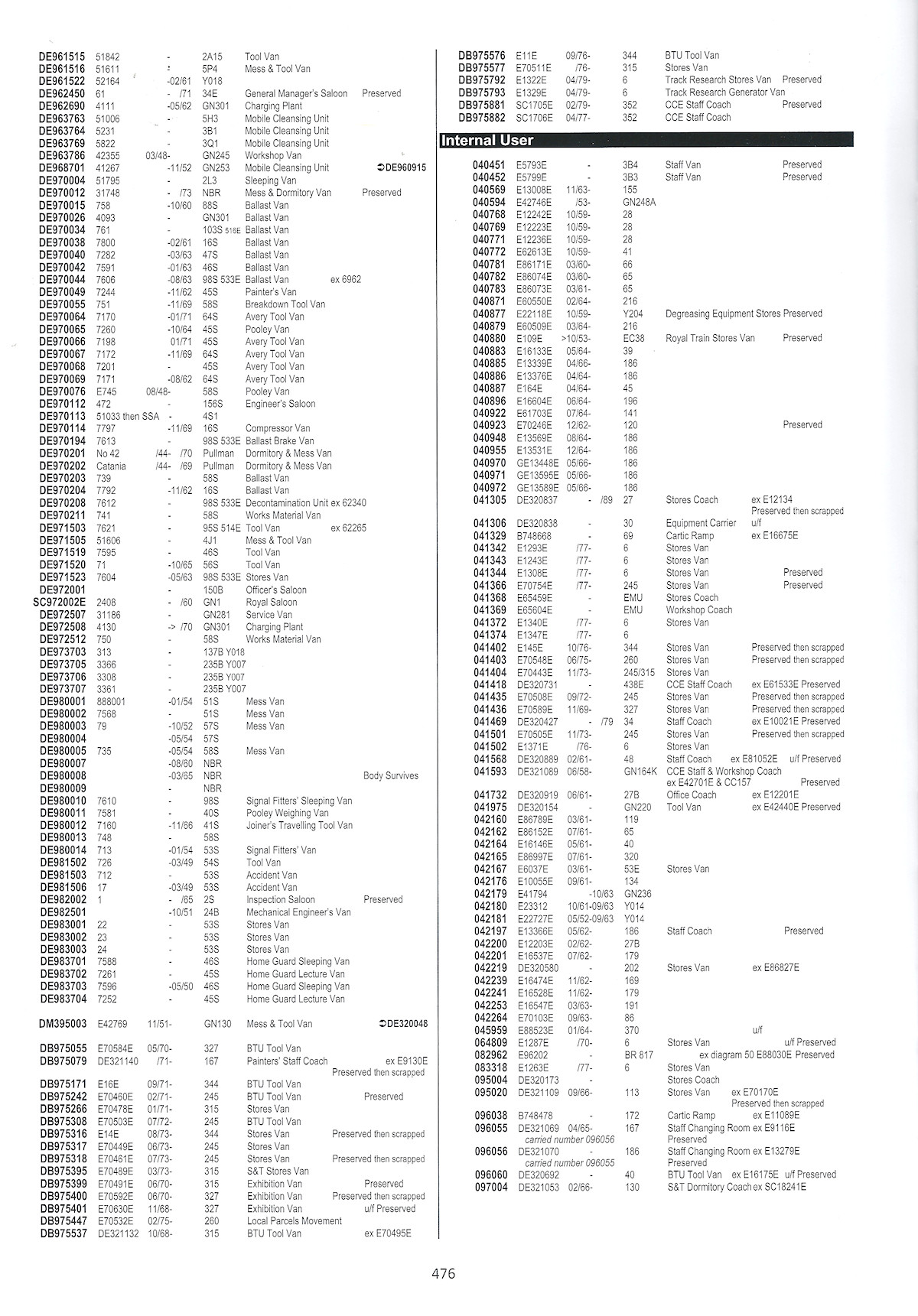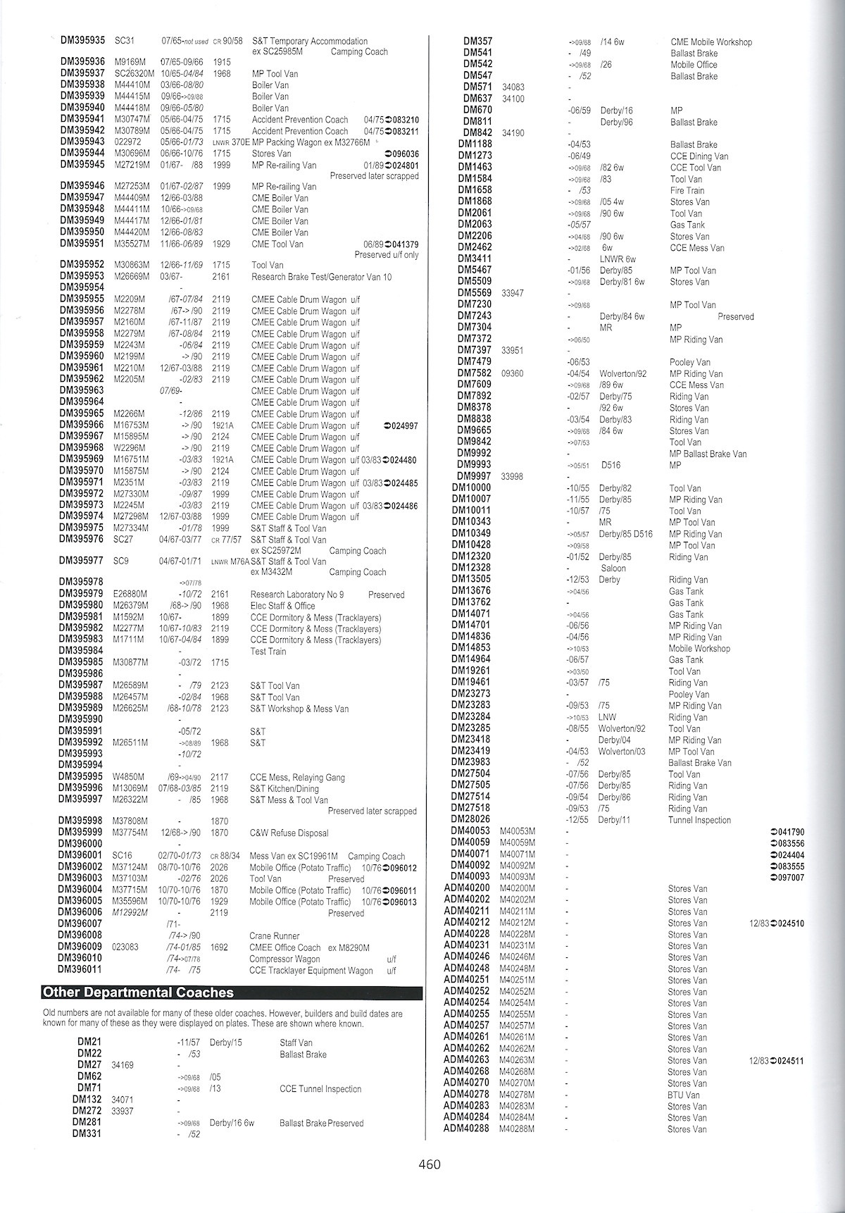 A very useful feature is a full listing of coaches renumbered in the regional departmental series, complete with dates, function and any subsequent changes. Renumberings to internal users and as carflats were also listed.