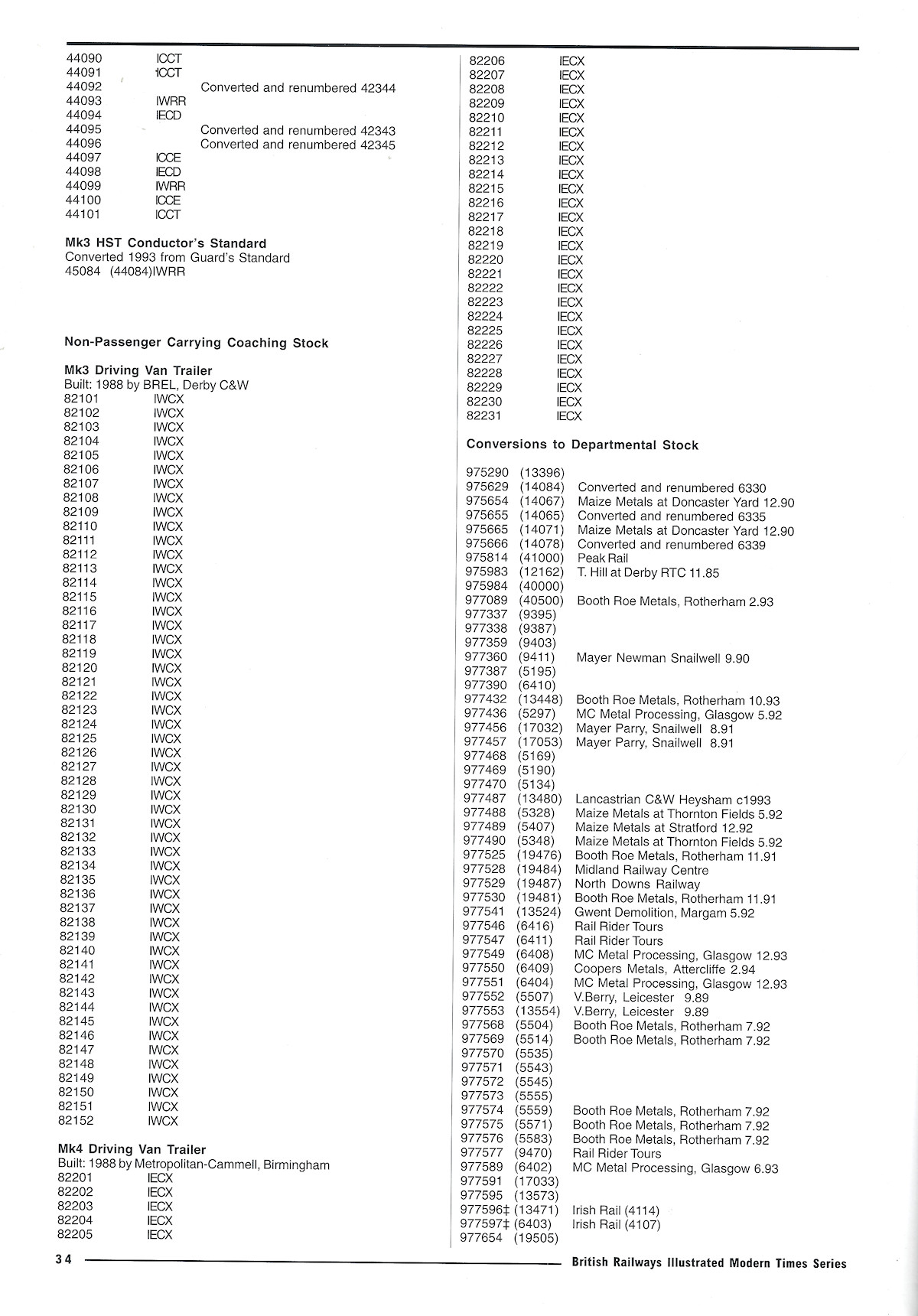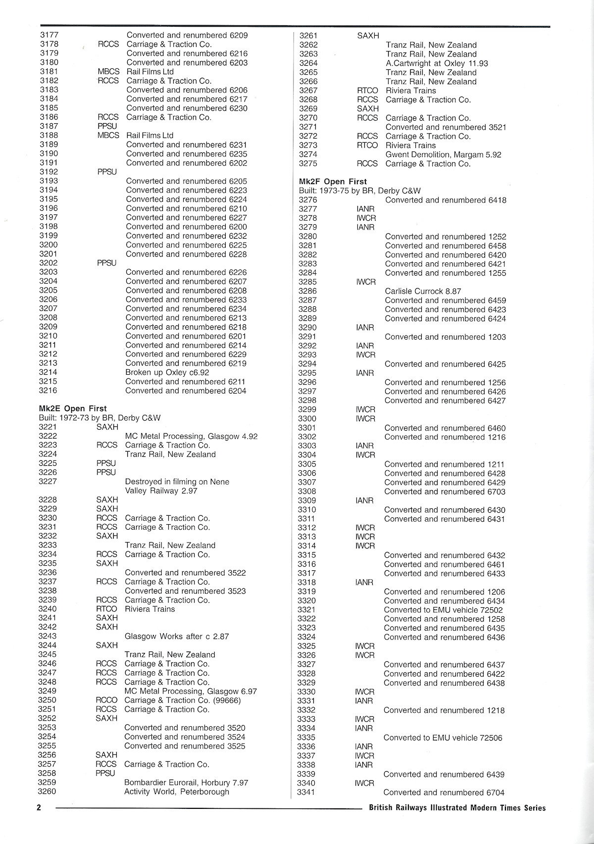 Also included are lists of Mk1s rebuilt/renumbered for departmental use, or converted to EMUs or carflats.