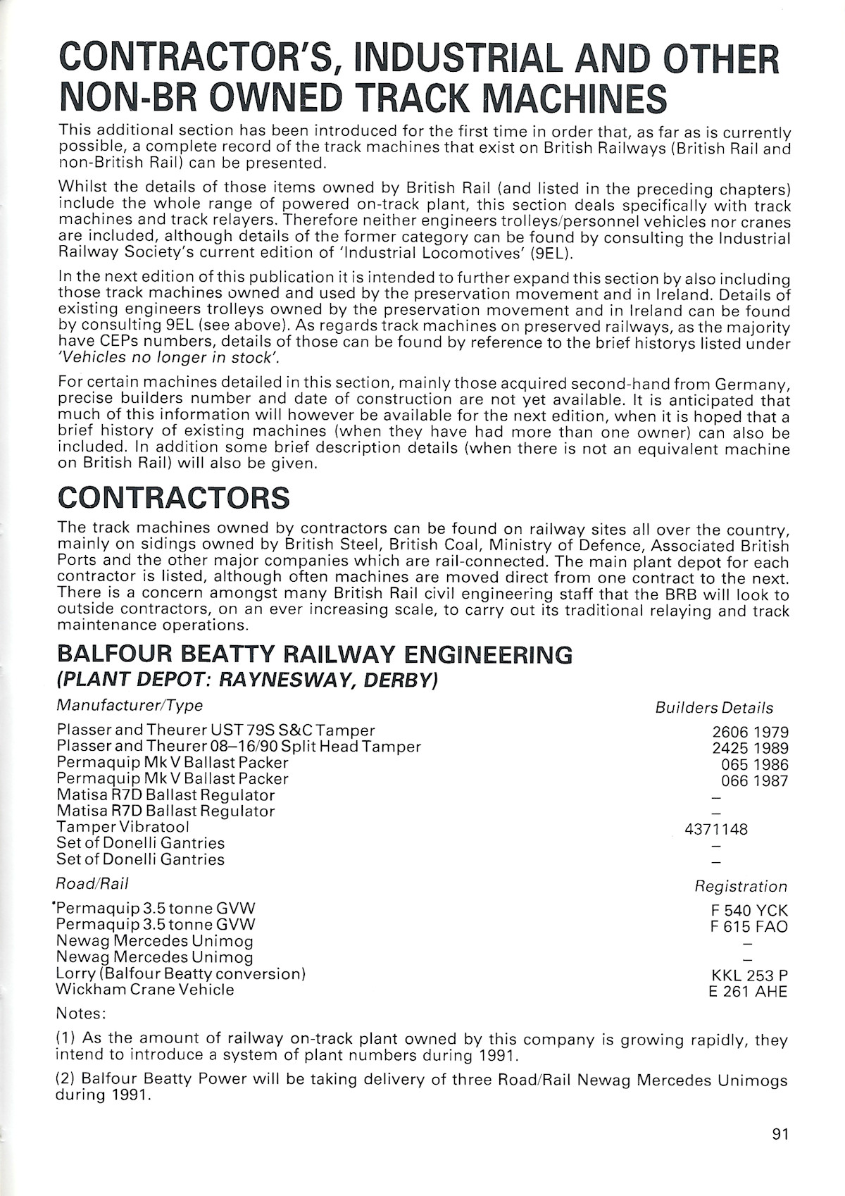 A new section covered machines owned by contractors and other railways, although this initially ran to just 5 pages