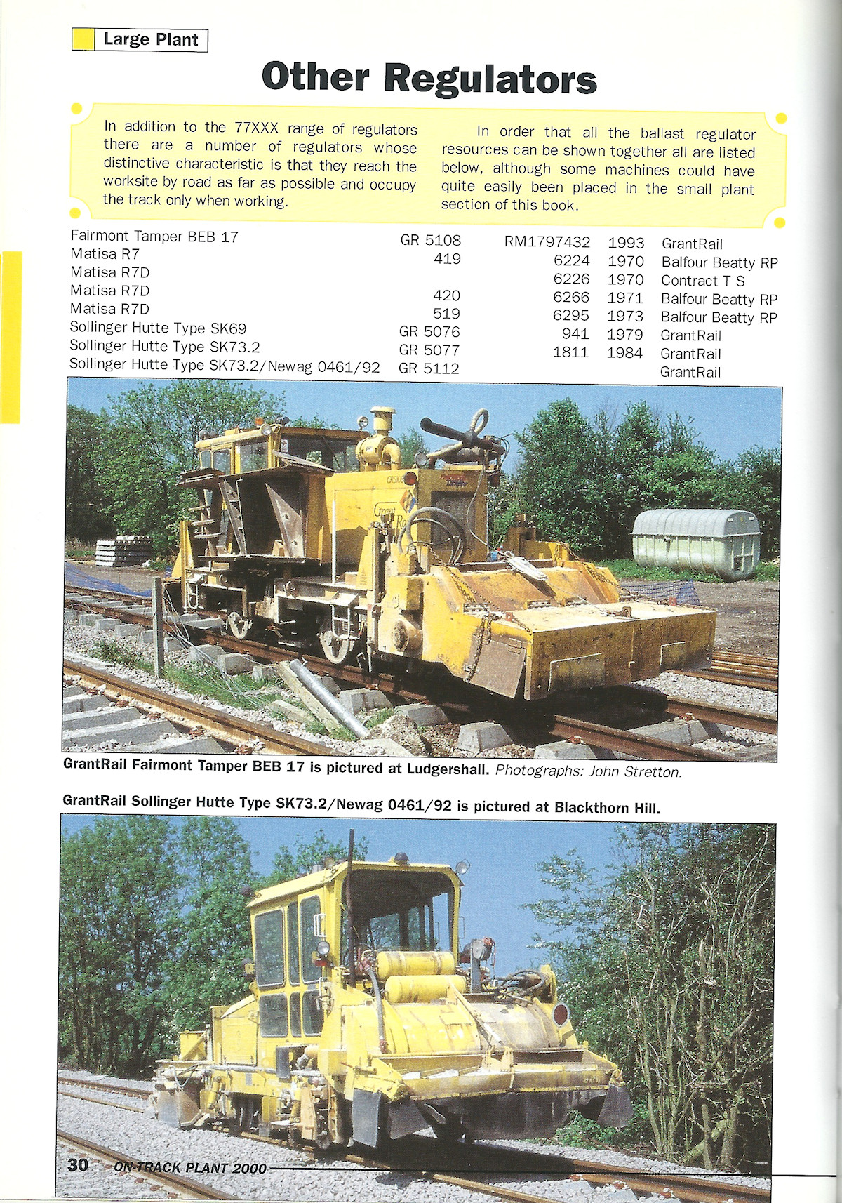 The photos covered most of the larger machines but also some of the smaller ones. Ironically (given the change of title) both of the two items of 'on-track plant' shown here are 'off-track'!