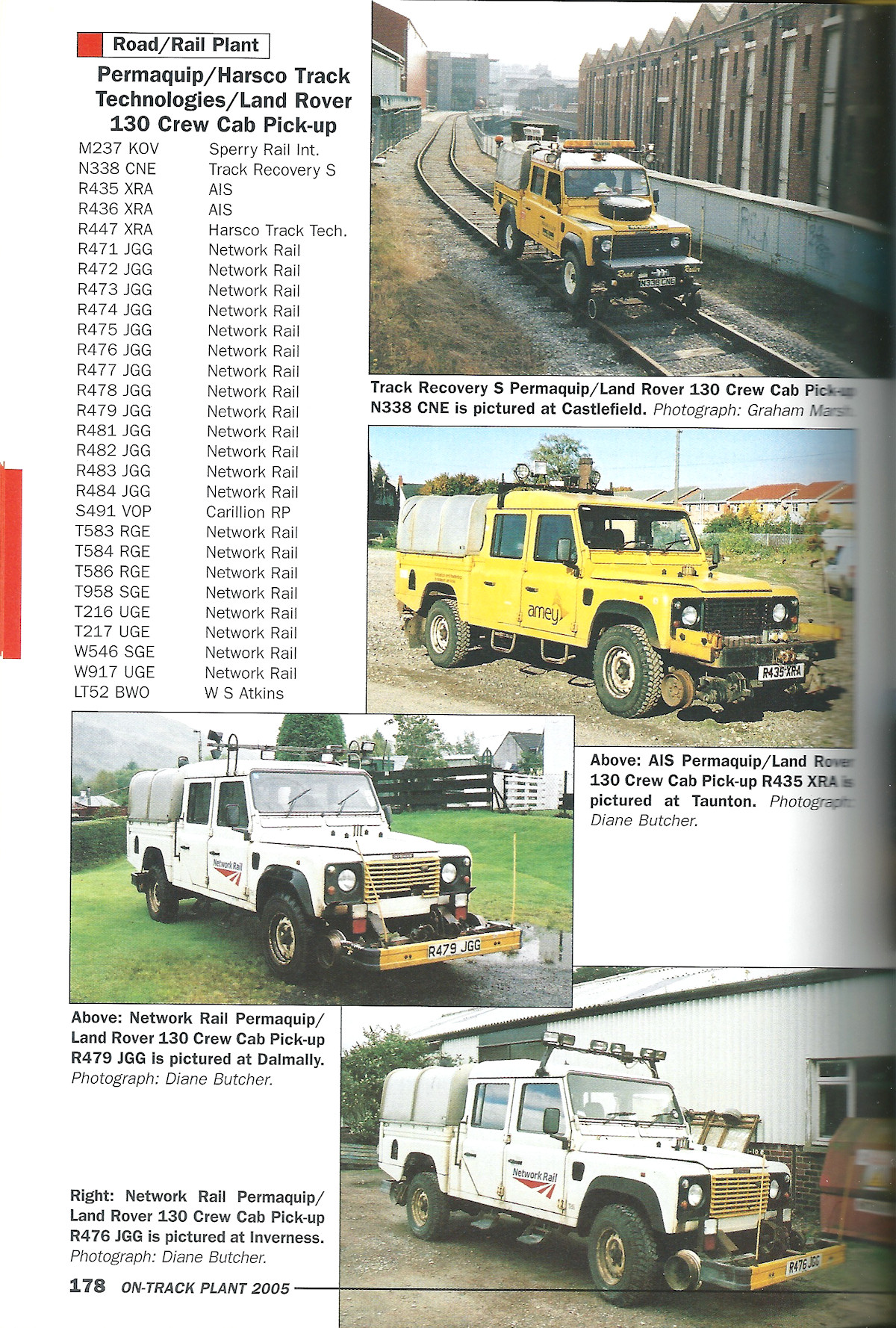 Road/Rail plant now took up almost half of the entire book, the Land Rovers shown here being amongst the more ordinary-looking of the types covered |