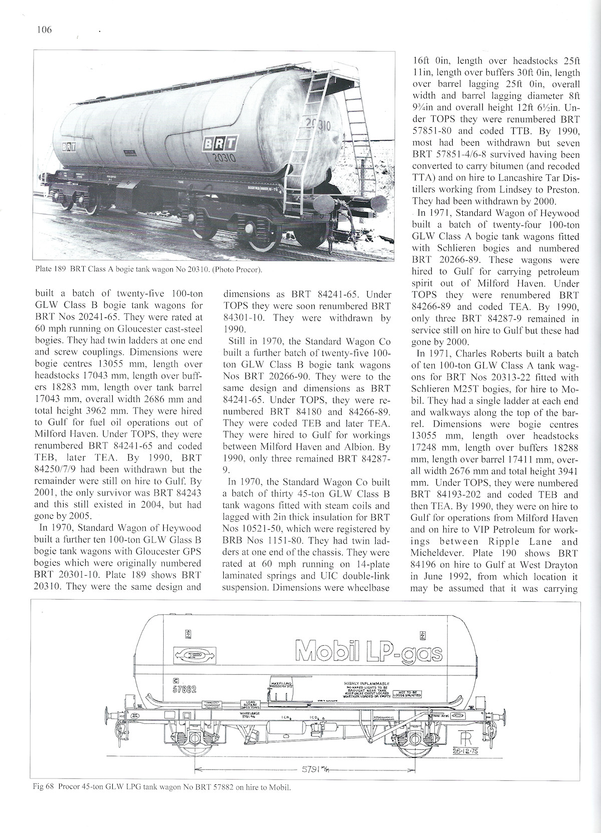 It has to be mentioned that there is no index, and little in the way of tables of data. Most of the information on things like dimensions and numbers (both pre-TOPS and TOPS) is there, but included in the narrative. This does make it rather hard to quickly look up things, although you will usually find something of interest along the way (such as the short-lived close coupling tried out in the 1960s). Another point is that the book is not quite comprehensive. Particularly for the earlier wagons, the text often provides details of certain wagons without stating if there were others. For example, Corn Products Co Ltd apparently had tank wagons numbered 1, 37 and 41. It is not explicit whether the other numbers were used. The lack of available information surely accounts for this, and also perhaps for the author not attempting to tabulate the wagon information. Despite these quibbles, this book is a magnificent work and must have been a labour of love for its author. The £33 price may seem high but is fair given the number of pages and photographs.