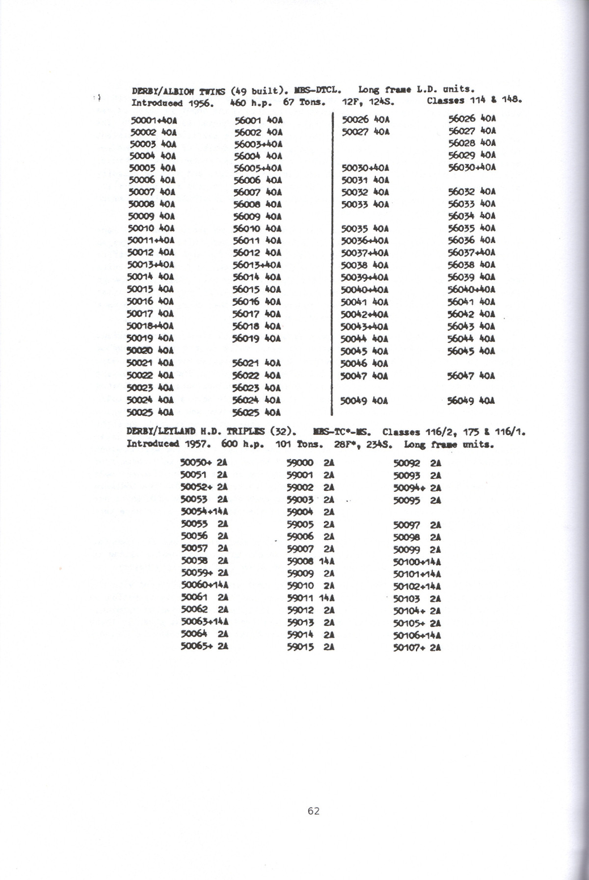 DMUs were listed in their original formations, each car also having an allocation (still using the pre-TOPS codes). This showed that some of the formations had since changed, and later books listed all DMU cars individually.