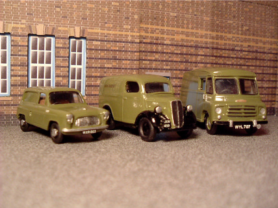 ![]() In LTE days a yard at the back of a bus garage or trolleybus depot was always worth a visit just in case any service vehicles were hiding there. Here in 1961 we find Ford 100E van 1100F, E83W van 791F, and Austin LDO1 van 1110AS just waiting to be 'copped' and underlined in the ABC! The models, which still require another visit to Chiswick for a little more detailing, are reviewed below. 'Classic Models' Austin LDO1 Van