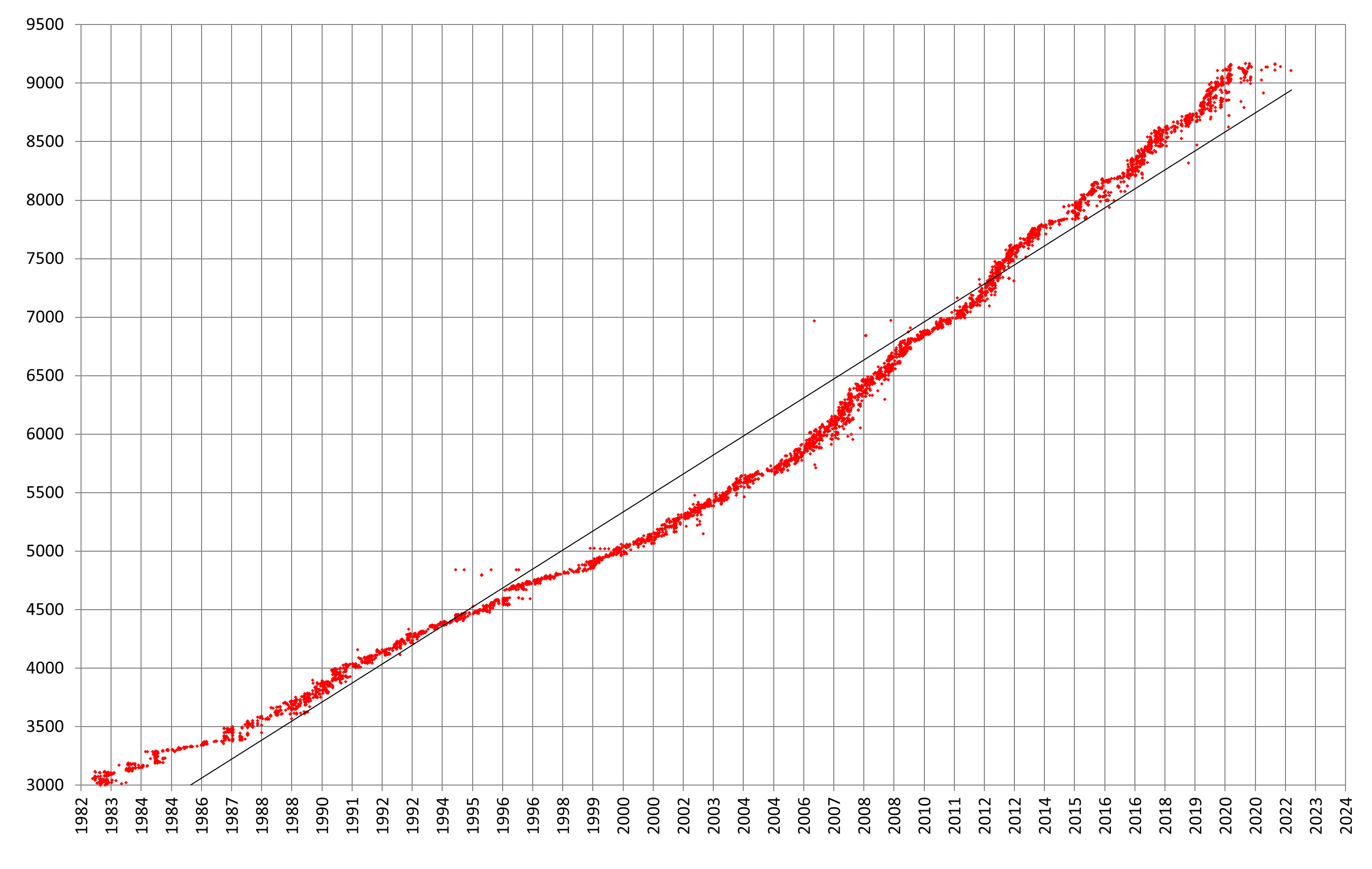 The first chart plots all known fleetnumbers for leased vehicles from 1982 to the present. It was in 1982 that a new number series was started for leased vehicles, this using numbers in the range 3000 upwards. The original number series (which had started at 1 in 1939 and had reached up to the 2300s) was retained only for owned vehicles, of which there were far fewer. The fact that fleetnumbers have continued to be allocated and (in most cases) physically displayed on the vehicles is probably the main reason why there is still an interest in the fleet among enthusiasts. For spotters, it makes it easier to keep a track of which vehicles you have seen (and which you haven‟t), while for others it gives a sense of historical continuity and enables changes such as the fleet size and renewal rate to be determined.