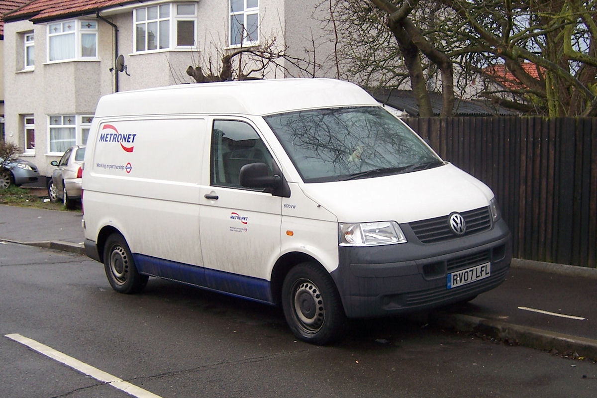 Ray has managed to photograph quite a number of service vehicles at residential locations in the Bexleyheath, Welling and Eltham areas. These are no doubt kept at the driver's homes during the day and used at night. The vehicles have included several of the large batch of VW Transporters new to Metronet in 2007. As these are coming up for being three years old, none have been treated to the new London Underground logos. On 21st February 2010 6170VW was found on Avondale Road. |