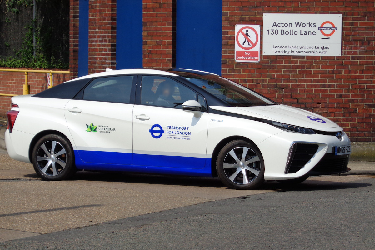Twenty minutes after catching a new Toyota Mirai leaving Acton Works on 12th May 2016, Ray caught... a new Toyota Mirai leaving Acton Works! Consecutively registered WM65HZE differs from WM65HZD in carrying TfL white/blue livery. Note that vehicles in this livery do actually have a stripe between the white and blue sections. However, since this is reflective white it is not always apparent. |
