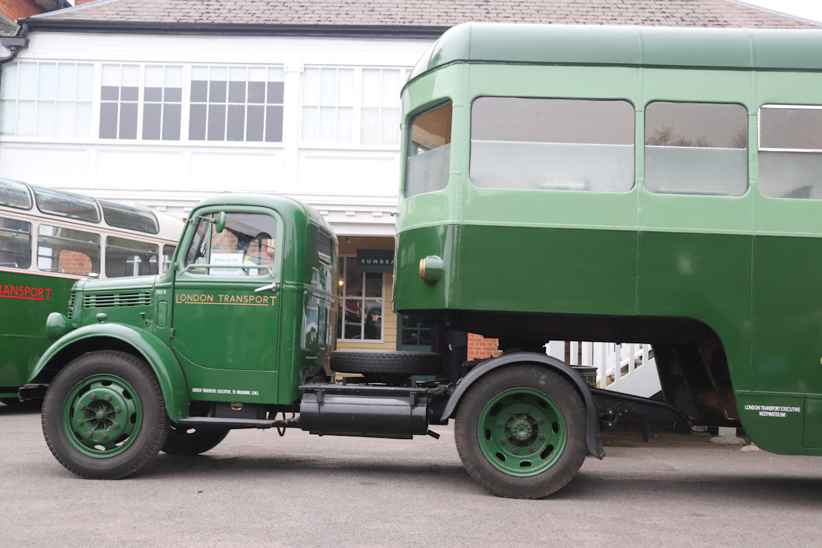 Restoration work on MC11, the preserved mobile canteen trailer, was completed at the London Bus Musuem earlier this year, and it was re-united with Bedford tractor unit 702B. This interesting view taken at the Museum on 7th April 2019 shows the coupling between the two units, and also the lengthy ramps fitted to the back of the tractor. Presumably these were to make it easy to reverse onto the trailer for coupling. I believe the trailers had their number painted on the chassis (once separate numbers were allocated in about 1955) somewhere in this area, but nothing is visible in this shot. That set me thinking about how we know this is actually MC11. It is mentioned in the Rennie/Aldridge book that 702B and MC11 were preserved after serving with Liverpool Corporation. However, that operator did buy 4 of the ex London Transport tractor/trailer combinations. Hmm... |
