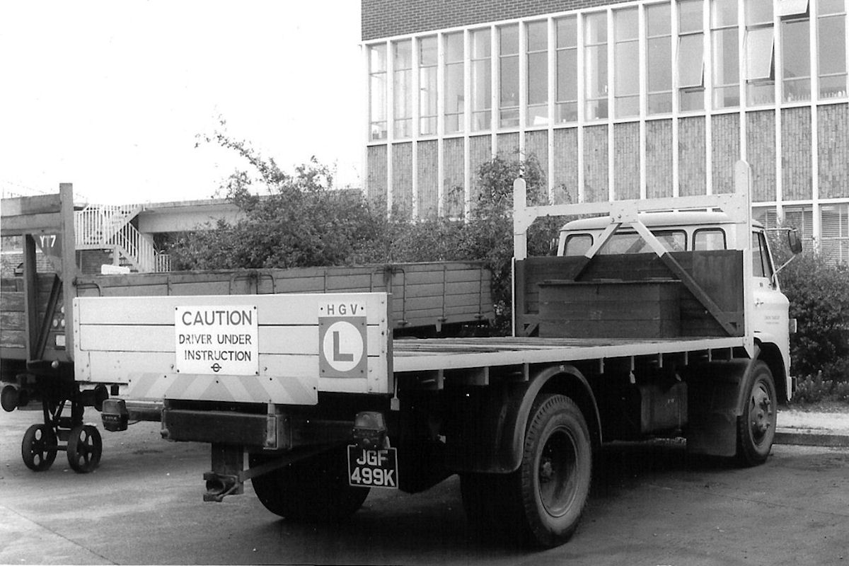 If you tuned-in last month you might recognise this location as being the front yard of Chiswick Works, with the Scientific Laboratory building in the background. The photo shown here was taken a couple of years before Derek's 1977 view and shows the rear of Ford D700 flatbed lorry 1722F. Flatbed lorries were exceptionally rare as service vehicles, and the two main examples were used exclusively for driver training. 1722F was new in November 1971 and was listed as having a bolster and fixed sides. If so, it was presumably the same as 'unique' 1529F. I don't have any photographic evidence that this was the case, though I have just noticed something that makes it seem plausible. Open lorries with fixed sides would normally have an opening tail-gate, and this was often lower in height than the sides. Though 1722F clearly had a fixed rear end when photographed, there do appear to be bump-stops on the end of the chassis frame, suggesting that it originally had a drop tail. 1722F was transferred to the driving school in mid-1974, at which time it was presumably modified with the sides removed and end fixed. It remained in use, mainly within the confines of Chiswick Works, until 1983 when it was replaced by a Bedford TL lorry. Parked on the left is York dropside trailer YT7, still in green livery. Comparison with Derek's photo (linked above) shows that YT7 did not move but it lost its sides and was loaded with YT6. Both were sold in late 1977. |
