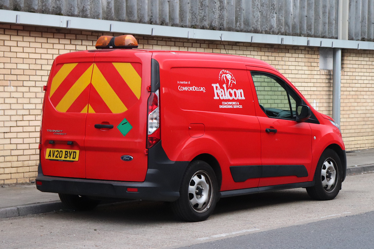 One of several Ford Transit Connect vans added to the Metroline fleet in summer 2020, AV20BYD initially carried incorrect registration AY20BYD. This was soon corrected, and Falcon Coachworks lettering applied, though it is usually to be found at Metroline's Central Engineering and Logisitics Facility (CELF) in Perivale, as here on 2nd August 2022. |