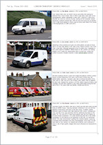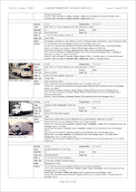 This page lists a series of documents that together contain the majority of the material available on this website. They are available for download as PDFs using the links in the table below. Click on the links to view the documents, or right-click to save them to your own PC. Examples of the page layouts for each section are shown at the bottom of this page. Note that the files containing the photos are rather large so as to retain a reasonable image quality level. Also included is a spreadsheet containing the main vehicle details. This is available in Microsoft Excel format (XLS), and includes guidance notes on sorting etc. New issues of each document will be produced periodically, and if you have any comments or suggestions about their content I would be interested to hear from you (tom@ltsv.com). | These documents are being made available because two other plans proved to be unworkable. The first was to make a new "comprehensive" service vehicle book, to follow-up on the SUP-15B publication produced for LOTS in 2005. The greatly increased quantity of information (both in terms of the number of vehicles and the amount of detail) meant that a printed book would not be viable. The second plan was to make a copy of the LTSV website available for download. As well as allowing off-line viewing, this would have acted as a distributed back-up in case something happened to me or to the website. I looked at various options for achieving this but in the end decided that they were too technically complex. So I thought of making the bulk of the content of the LTSV website available as downloadable PDF documents. Although this loses much of the functionality (eg sorting vehicles), it allows the data to be "preserved" and also makes it easier for users to print out the content if they wish (but buy some extra ink first!). |