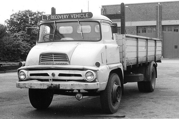 | Details: The nine Ford Thames Trader towing lorries bought in the early 1960s soldiered on until 1977 (or 1979 in one case), when they were replaced by two batches of shorter Ford D lorries. 1240F had been based at Hammersmith, Hounslow and Tottenham, and was delicensed in February 1977. However, it was not sold for a further 7 months, and was photographed at Chiswick works awaiting its fate in July. Unusually for a grey vehicle, the fleetnumber appears to have been applied with white transfers. | ||||